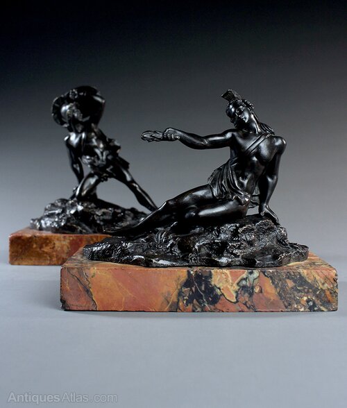 Rare pair of Greek warriors in bronze by Cortot