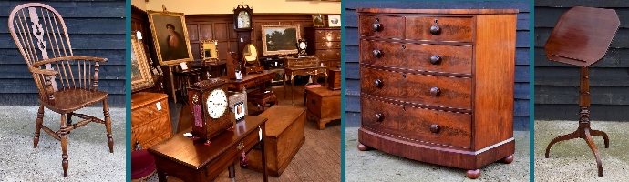 Superb quality antique furniture & decorative items for your home. Furniture available both restored and un-restored. We stock dining tables, sets of chairs, bookcases, side cabinets, chest of drawers & wardrobes. Friendly & professional family business, furniture restoration service available, free estimates, 'Try before you Buy' Service. Viewing by appointment or we can bring items to you. Open 24 hours. Please telephone for further information.