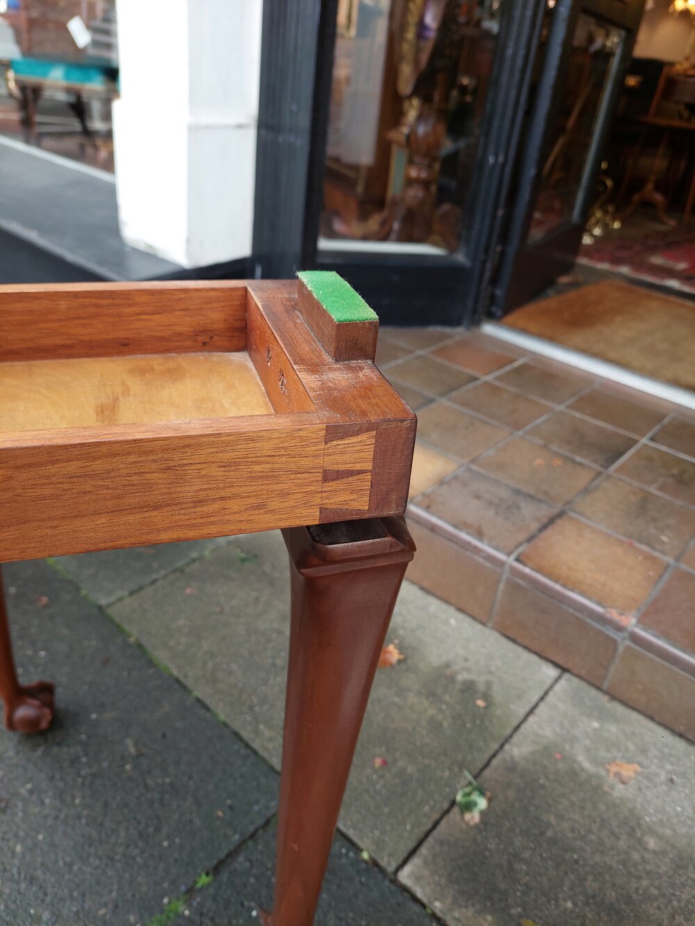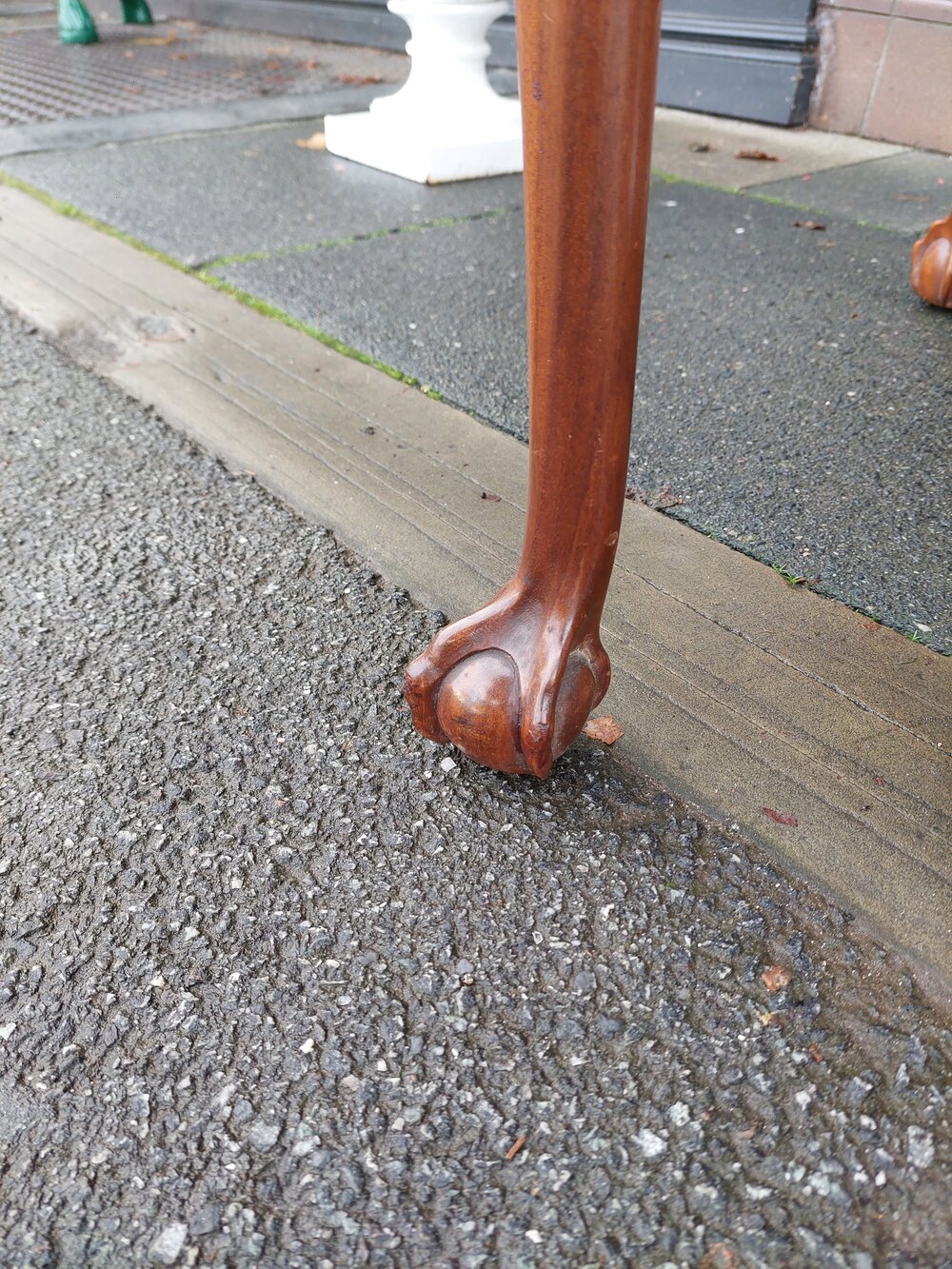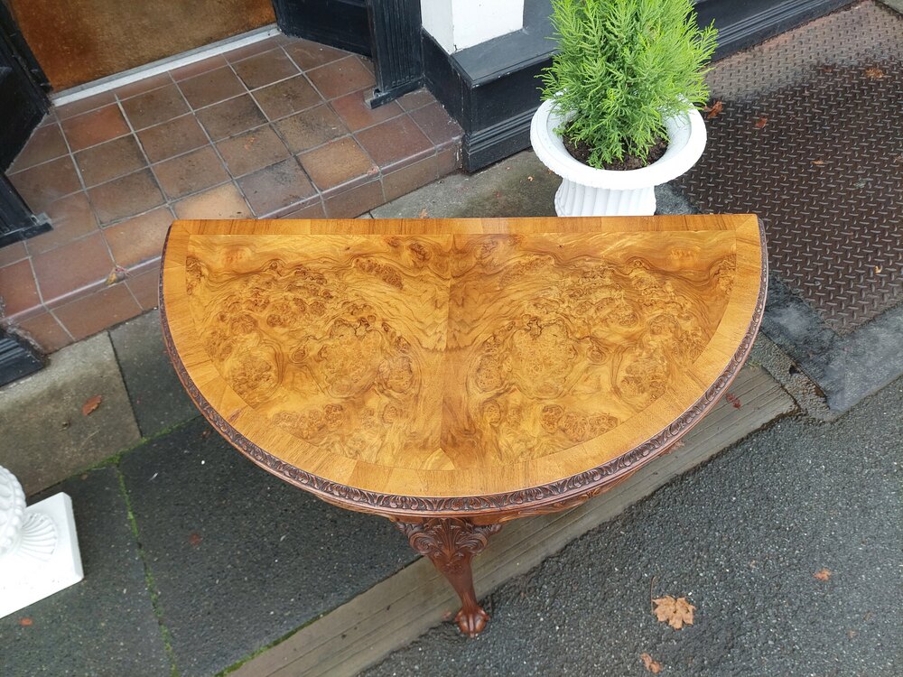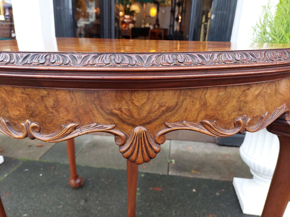 18thC Style Walnut Fold Over Card Table with Crossbanded Top on Cabriole Legs and Ball & Claw Feet - 36"w x 18"d x 30"h closed - 36" diam x 29" openDate1920s