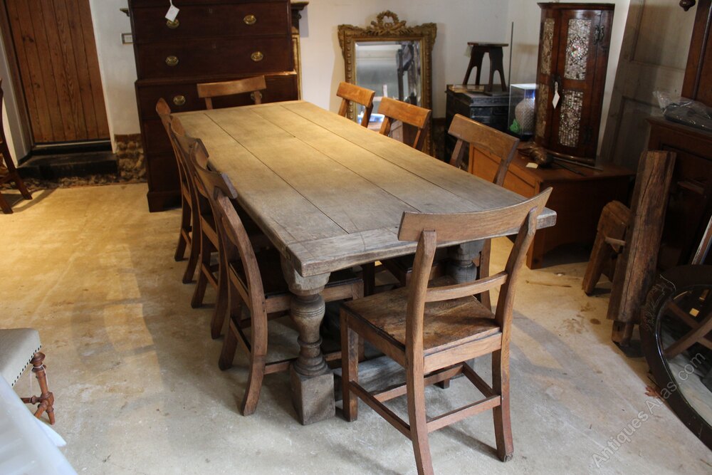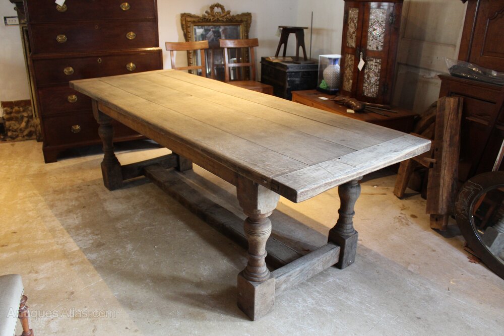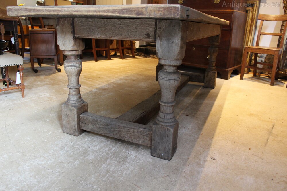 Here were have a wonderful Edwardian French monastic refectory farmhouse dining table c1900. As you can see the table has a great washed colour and patina. There is a three plank thick Oak top with cleated ends. The top lifts off for ease of moving. The thick solid Oak frame has well turned legs and joined stretchers. The table will comfortbaly seat 8 people and is in great retail condition ready for your home. The dimensions are approx 230 cm long 85 cm deep 77 cm high.Buy from a trusted LAPADA dealer