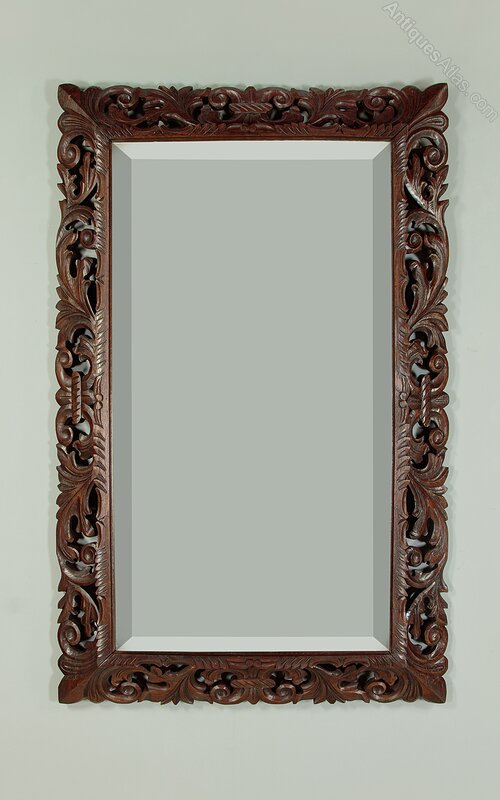 Large Carved Oak Cushion Frame Mirror c.1890