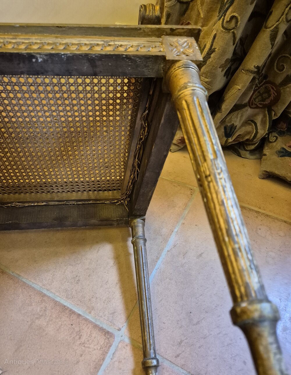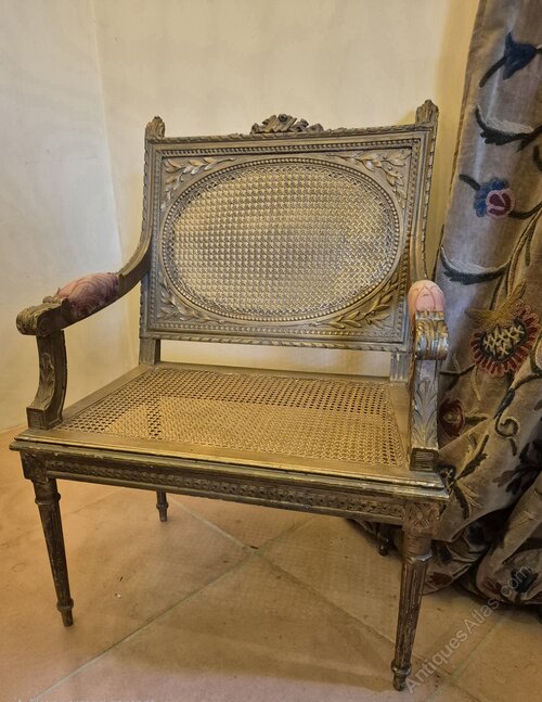 C19th French Giltwood Caned Bedroom ArmchairWith original, if a little tatty, upholstery to arms.