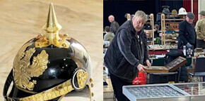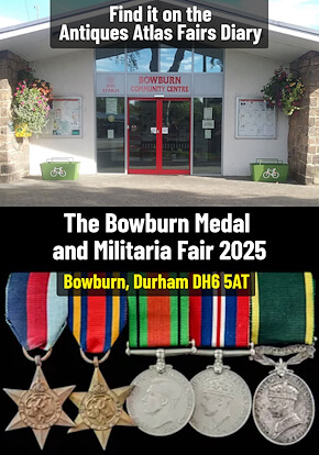 100+ quality tables of militaria, medals, badges, uniforms, headdress, insignia, helmets, military books, ephemera etc... Plenty of free parking, flat access, good catering facilities.