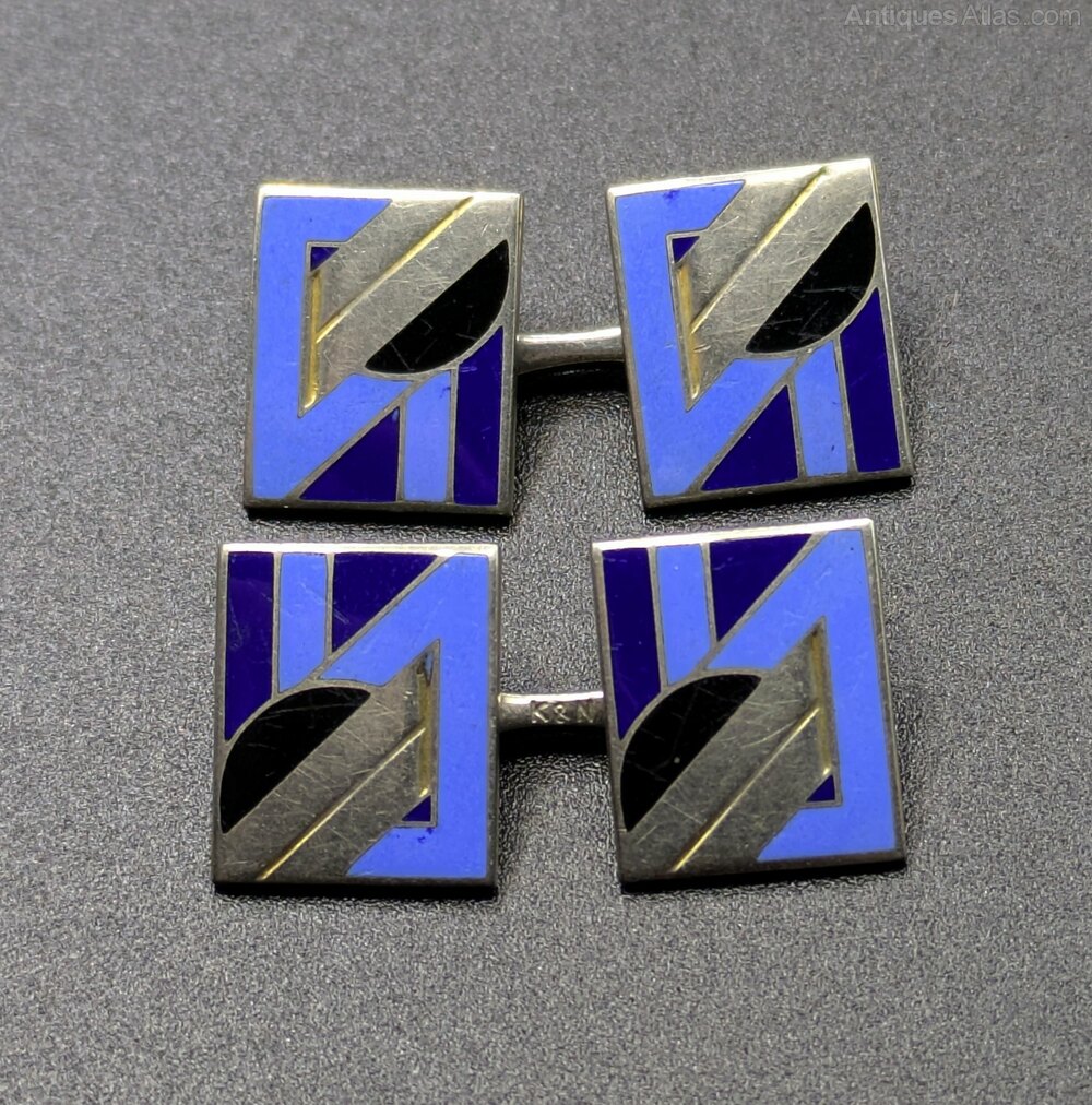 Art Deco Matching pair of Enamel Gents Cufflinks