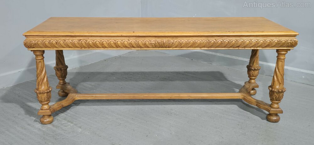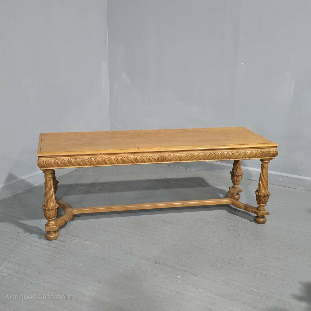 A superb golden oak foot board or coffee table with single stretcher and balluster carved legs, excellent condition throughout and ready for the home.20.5" high