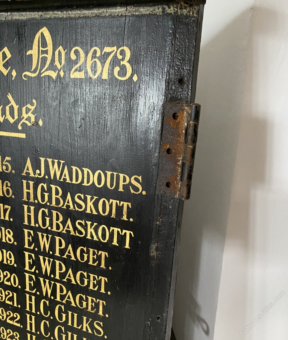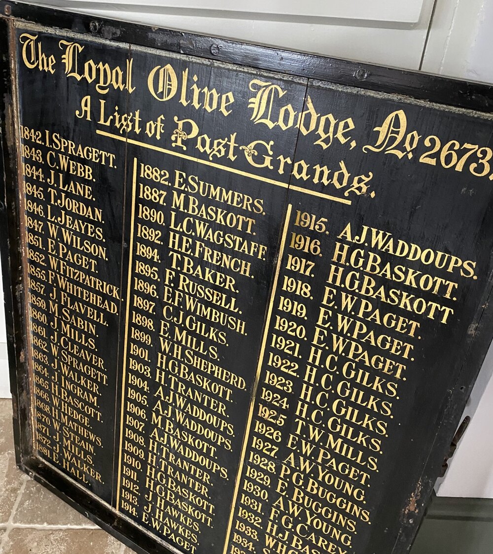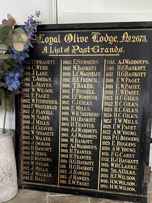 Highly decorative item, a great piece of wall art.Victorian honours board listing the Past Grands of the Loyal Olive Lodge no 2673