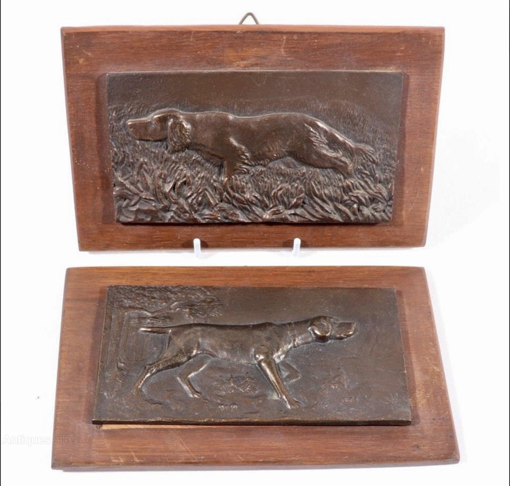 Pair of gun dog bronze plaques, Pointer and springer spanielPhotos show details