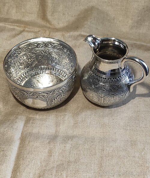 solid silver London 1875 sugar bowl 8.5cm diameter 5.25cm high maker WHSolid silver London 1874 cream jug maker CF