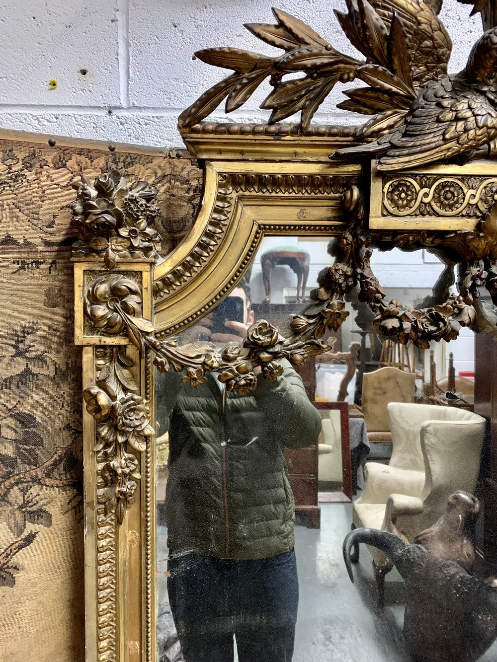 A truly exceptional gilt wall mirror.On a grand scale with fabulous carving throughout. Original mercury mirror plate with sparkle and showing just the right amount of age.