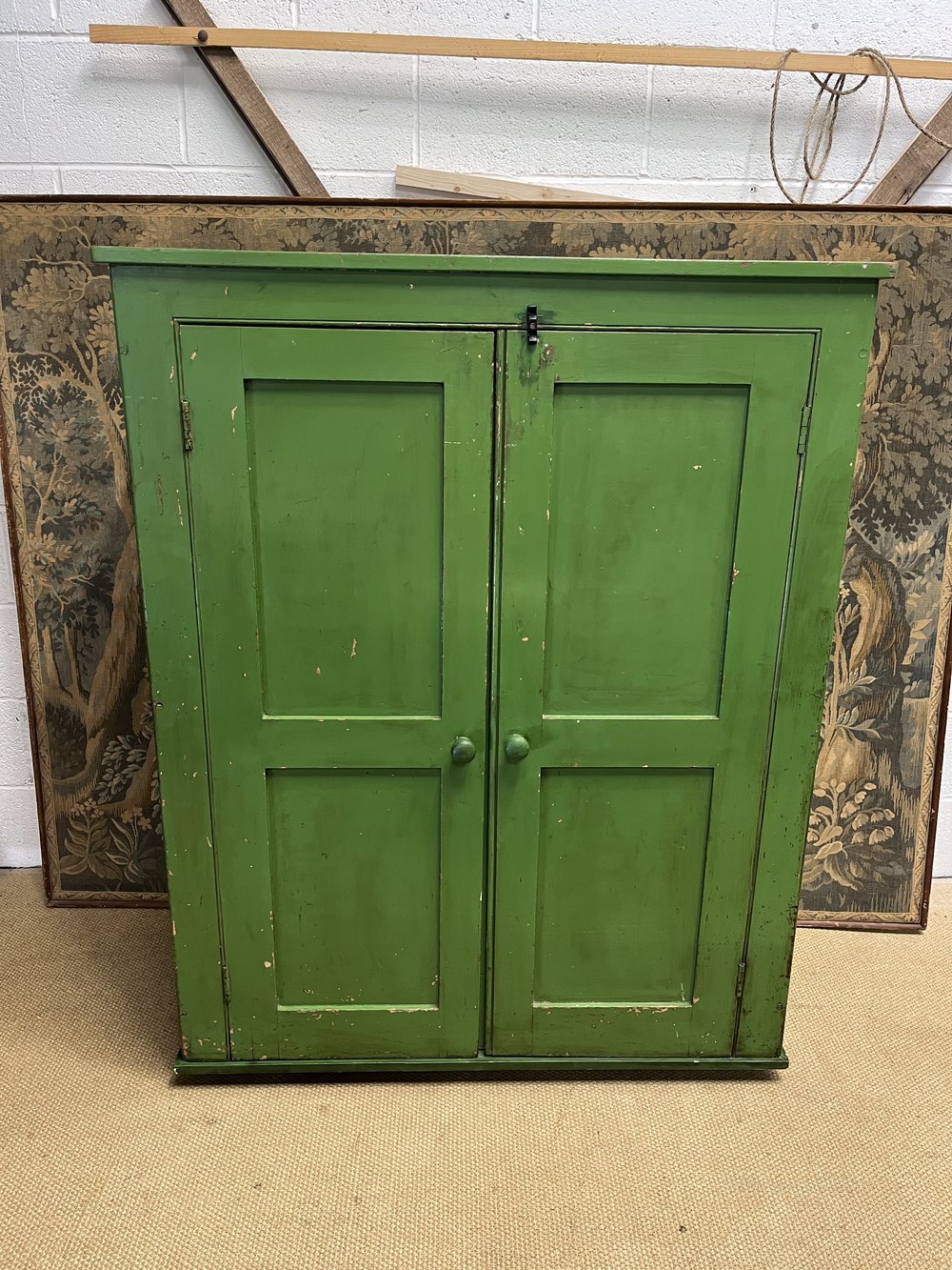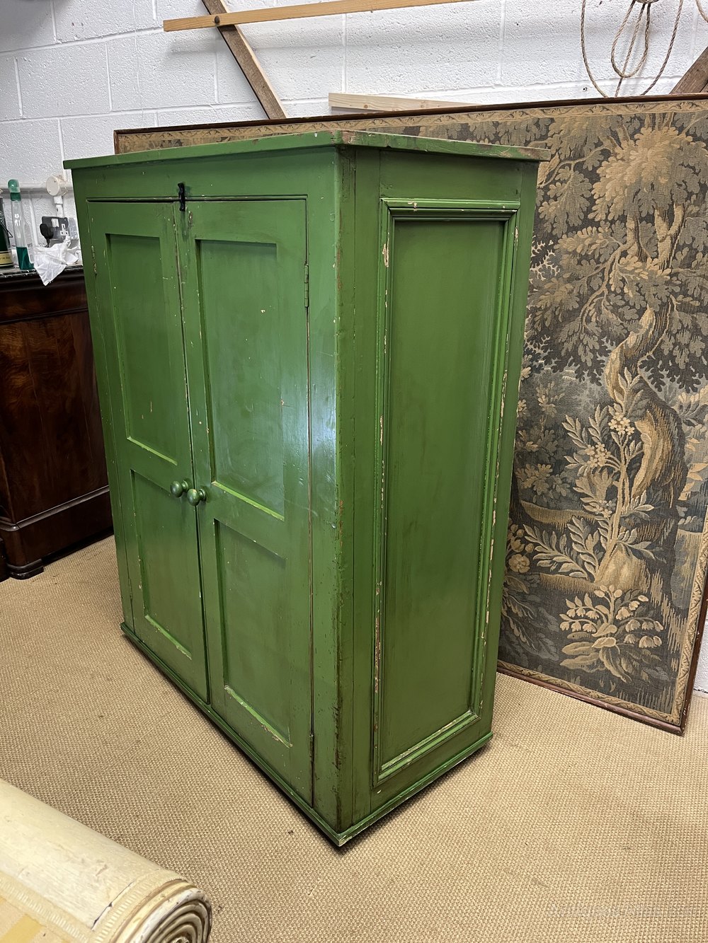 Victorian Kitchen Cabinet In Original Green Paint.All our items are available to purchase online and can be shipped globally with fully insured specialist Antique shippers.