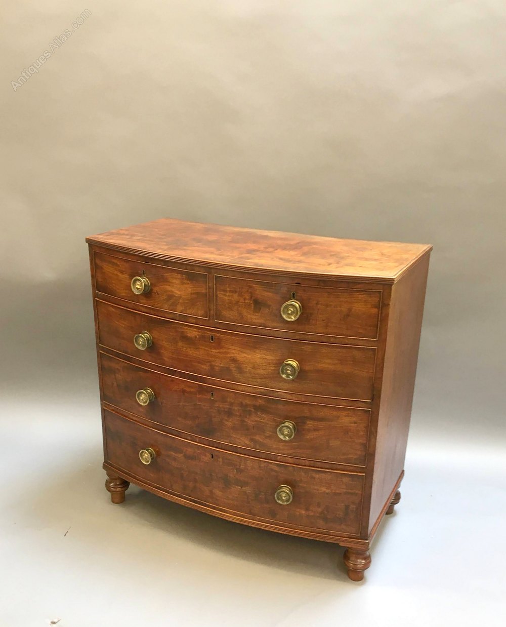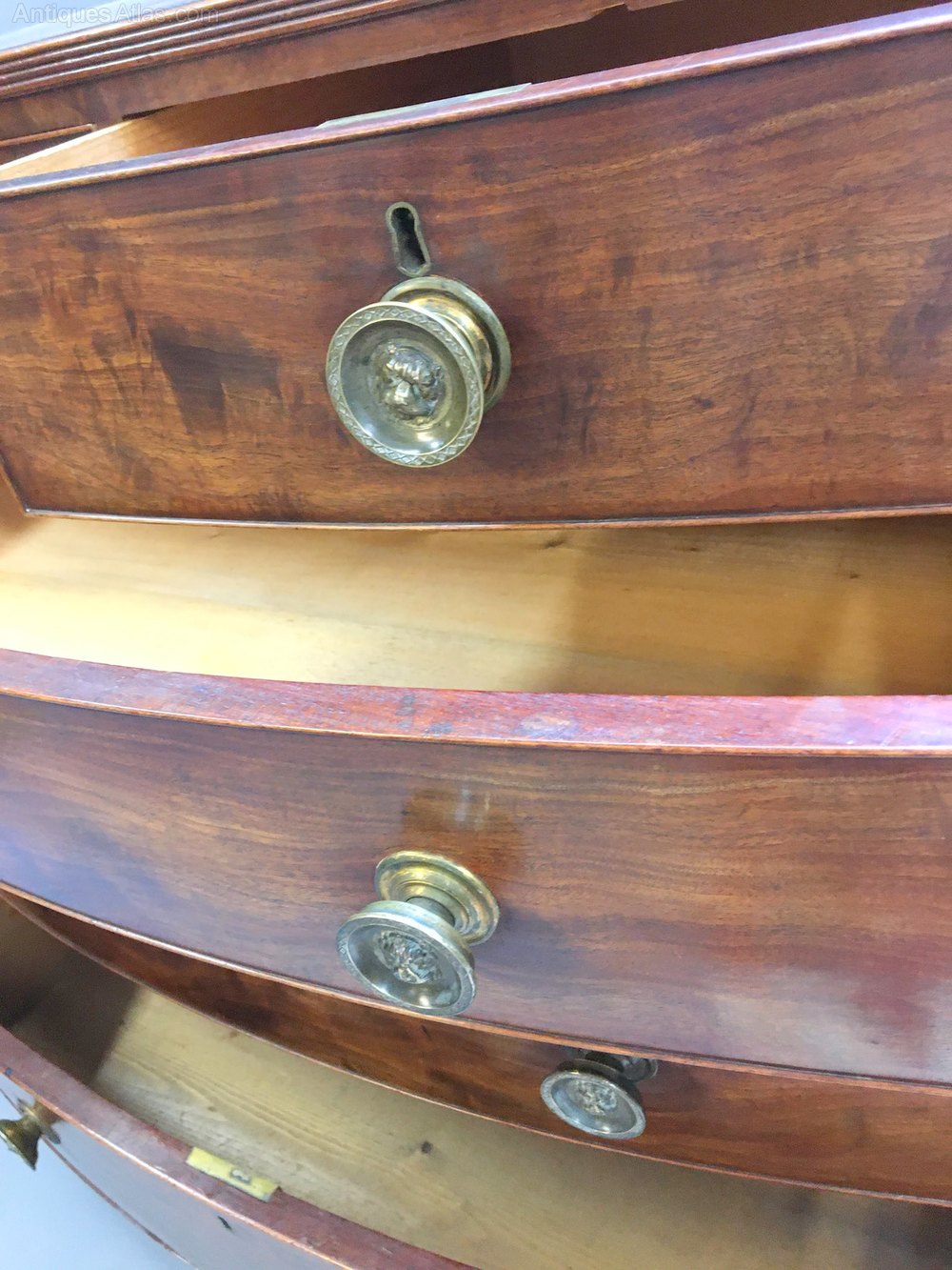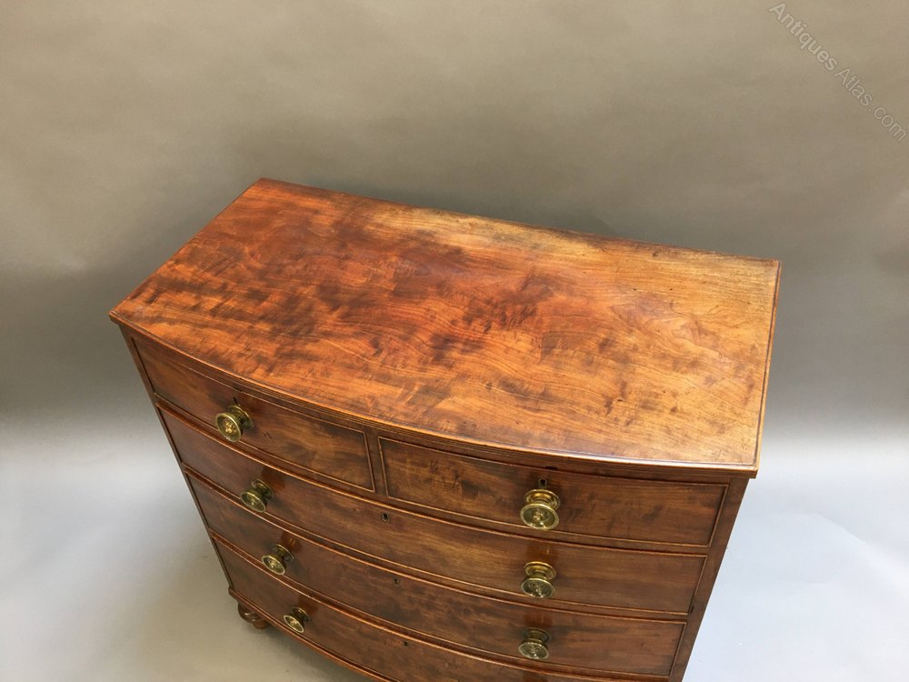 A good example of very well figured mahogany of "conker" colour, the 2 over 3 drawers with leopard mask gilt knob handles, raised on turned supports.99cm x 100cm x 54cm
