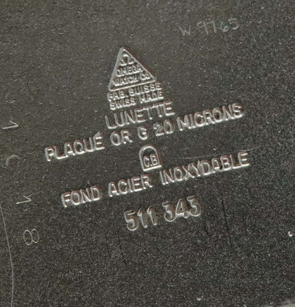 The watch is powered by a 17 jewel, manual wind Omega caliber 620 mechanism. Serial numbers date this watch to 1972.