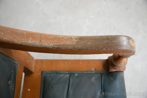Condition: Good solid condition, obvious age and wear to the scumbled finish particularly to the arms, the rexine needs to be replaced as it's worn and marked.