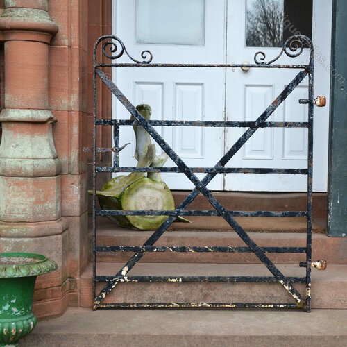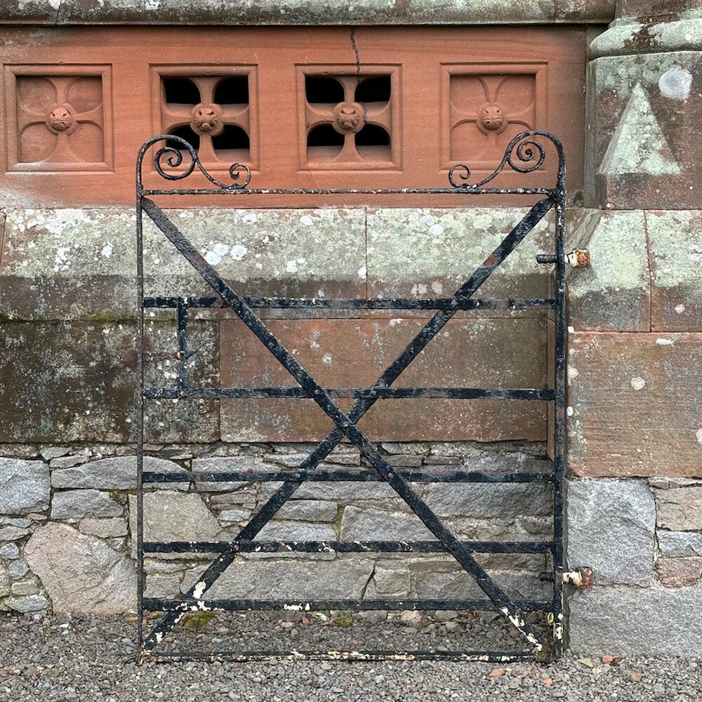 Victorian wrought iron strap work gateWith scrolling toppers, cast iron hinges and original catch.