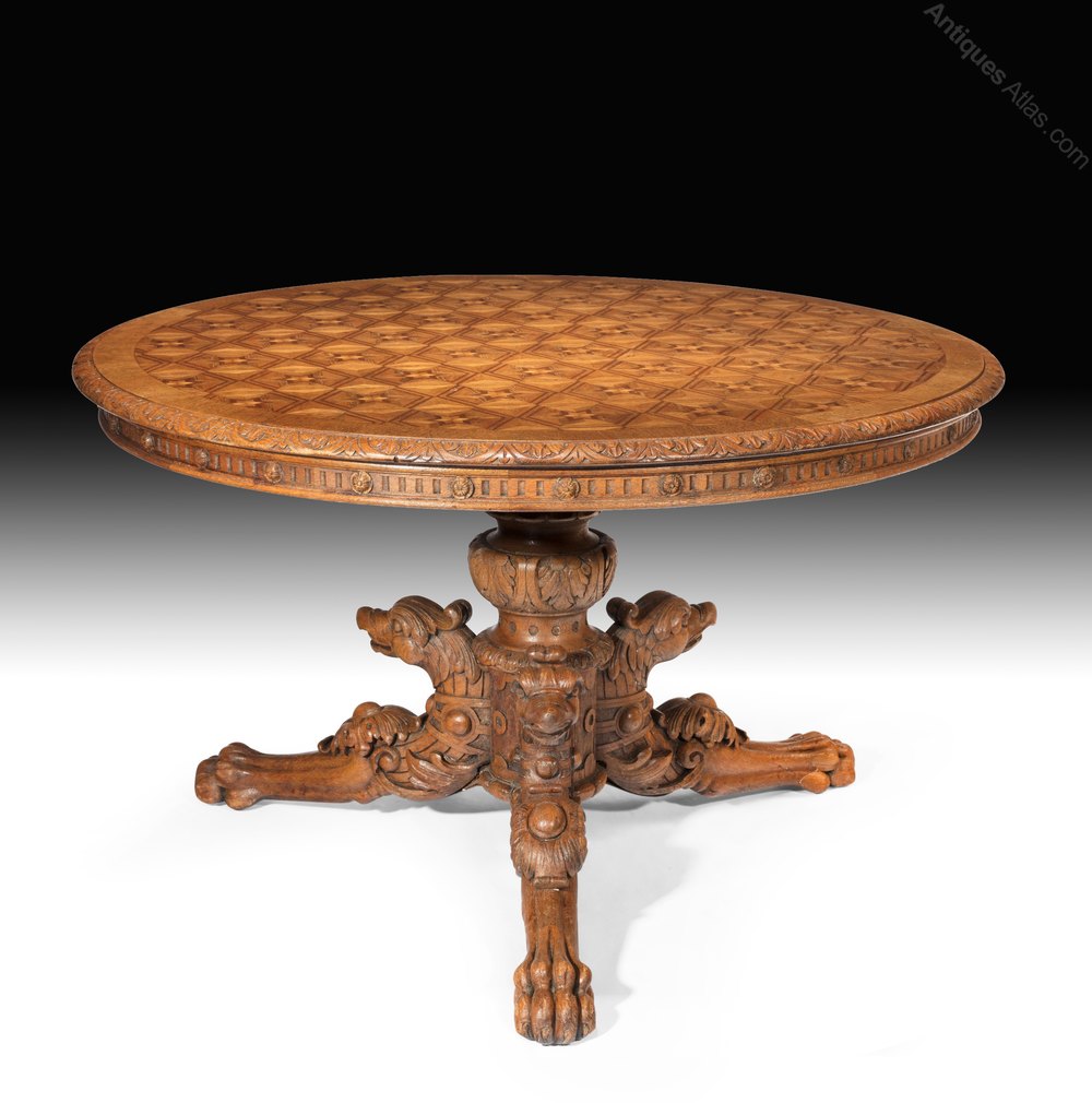 Wonderful 19th Century Oak Parquetry Griffon Table
