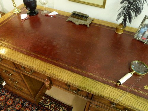 Handsome Oak Pedestal Desk with Burgundy Leather.