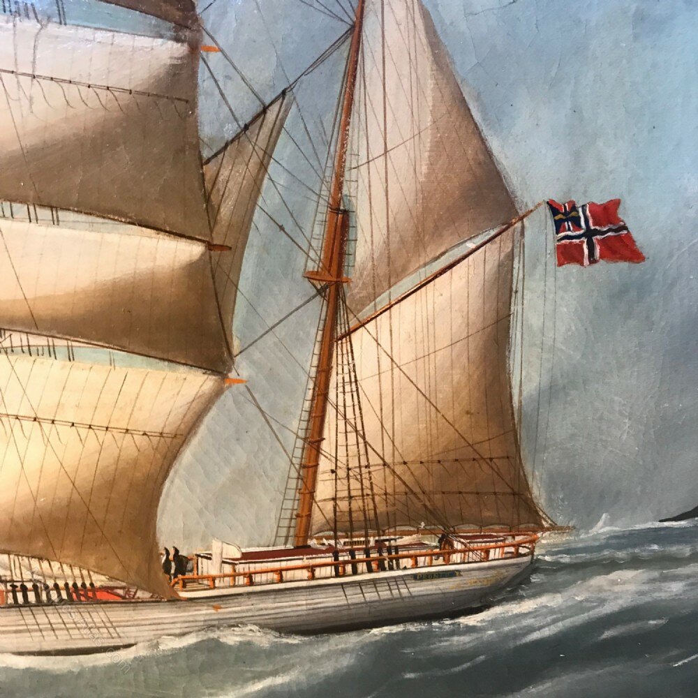 Norwegian Barque Sailing Ship 19th Marine Painting