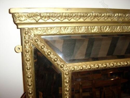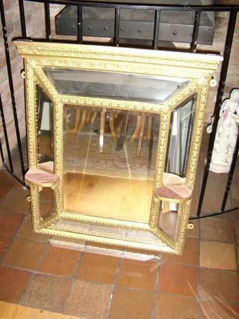 A beautiful Cushion Mirror with Quality Beval Cut Mirror Panels and two tiny platform bracketed shelves for standing a pair of candlesticks on.The plasterwork is in very good condition throughout but as usual the gilt finish has been refreshed a few times over the last 100 years.