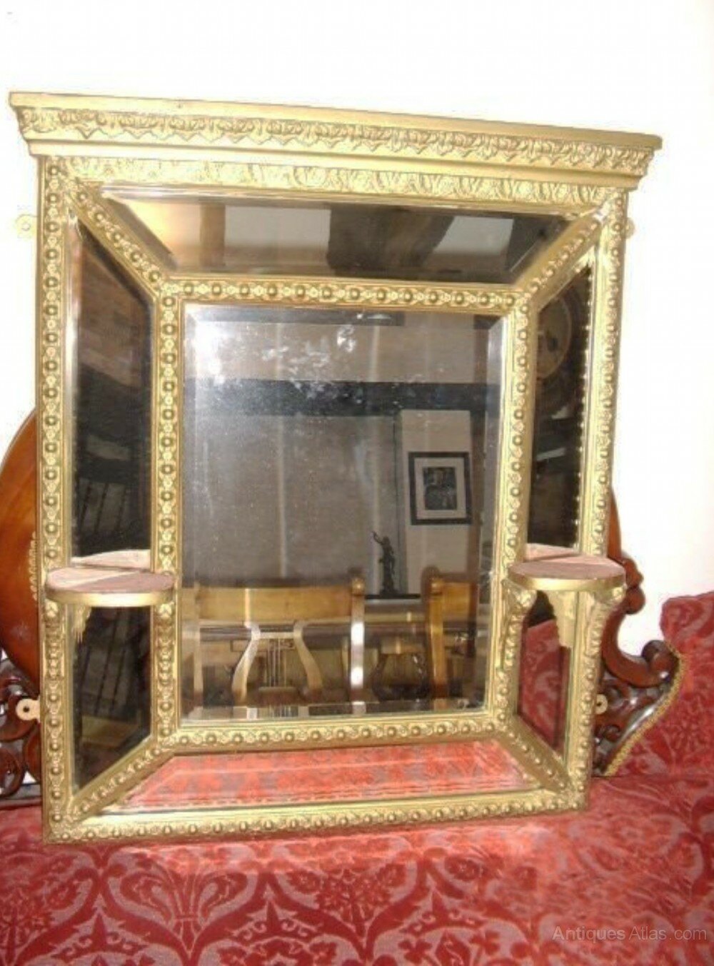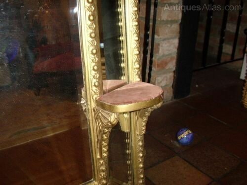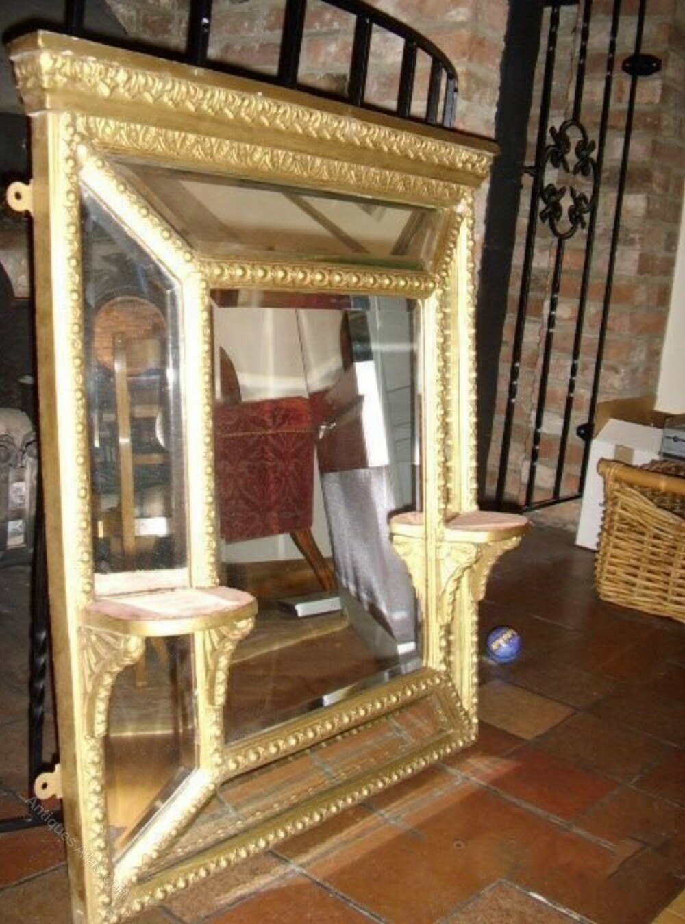 Gilt Cushion Mirror Bevel Cut 19th Glass Shelves