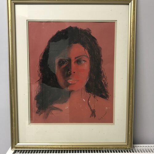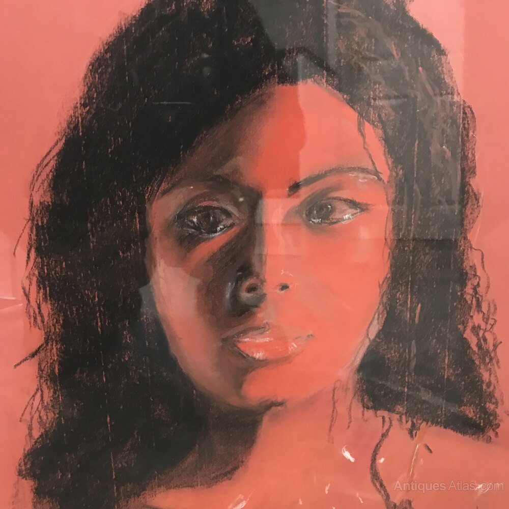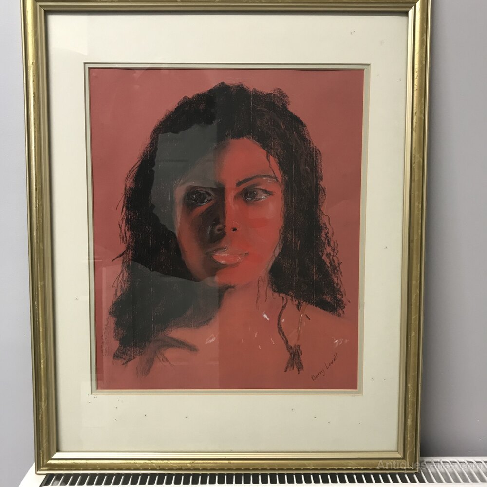 Signed Pastel Portrait by Barry Lovell, around 1960, nicely framed with double mount.Very professional work depicting a young lady in her twenties with curly dark hair.