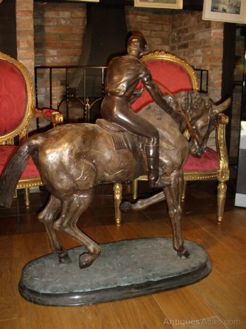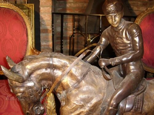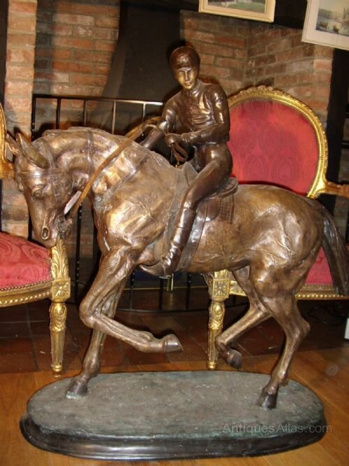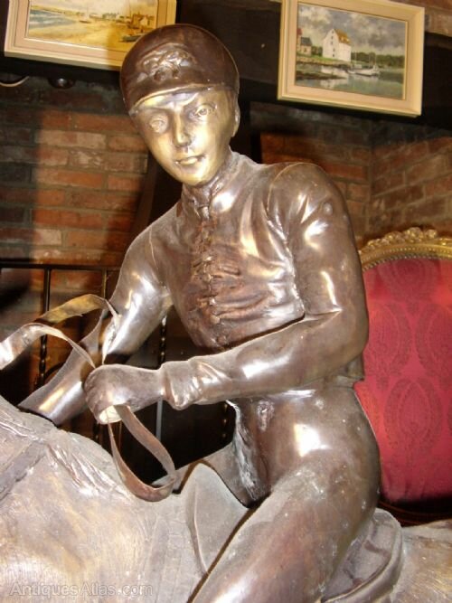 Huge French Bronze Race Horse Sculpture Of Jockey