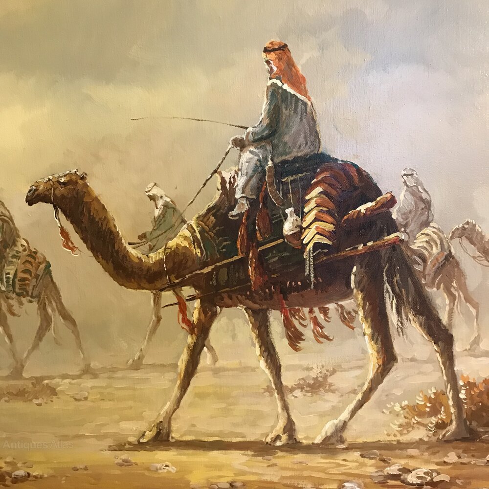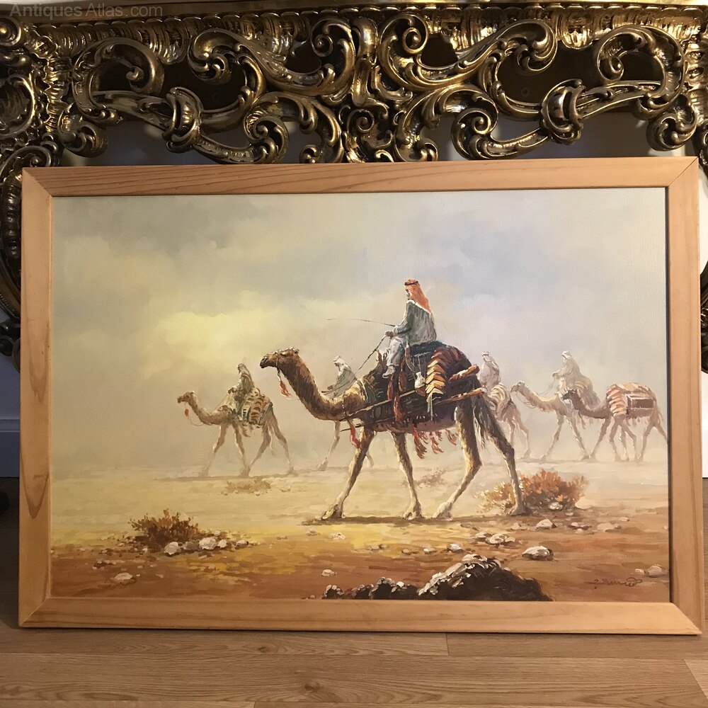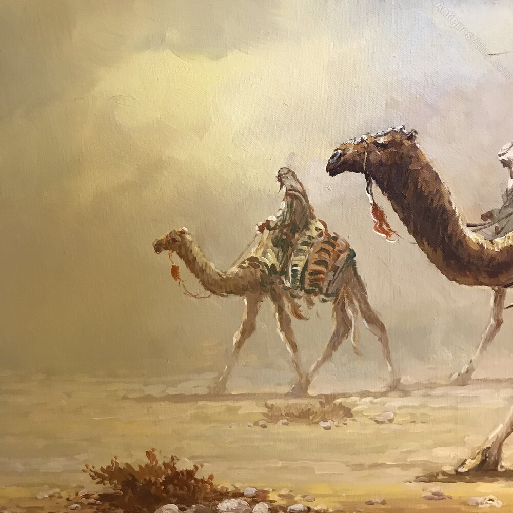 Camels In Desert Landscape Oil Painting Of Bedouin