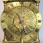 The dial plate is profusely and beautifully engraved with a tulip design as are the corners. The centre carries the 4 tabbed alarum setting disc that has Roman hour numerals and a central open tulip flower. The cut iron hand is tailed to set and position the alarum set-off. The 3 top frets are of armoral design (English civil war period) and the front fret is nicely engraved with the shield bearing the date "1649" (the exact year that King Charles I was executed). The 6 3/8" diameter chapter ring has 2 outer circles, broad and short Roman hour numerals around a divided quarter track also, an inner circle that is dotted at the hours and 'wheat stalk' half hour marks. The decorative yet substantial bell strap has a large, central urn finial.