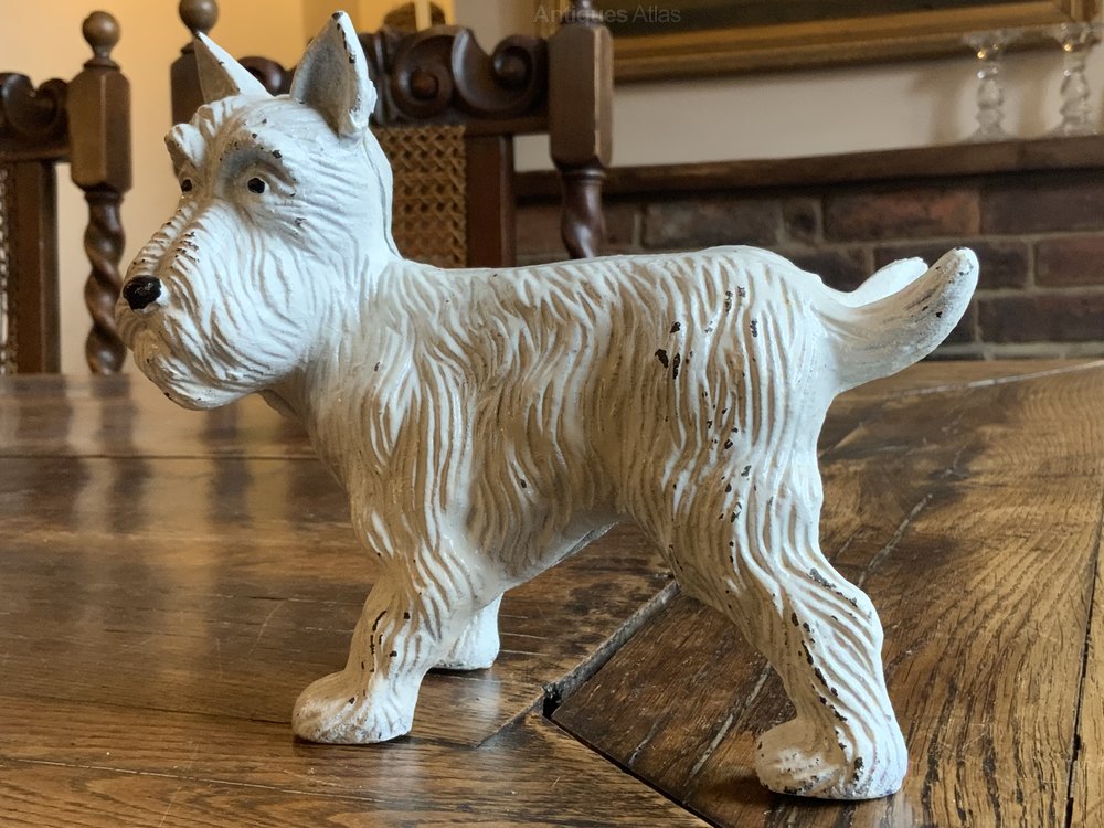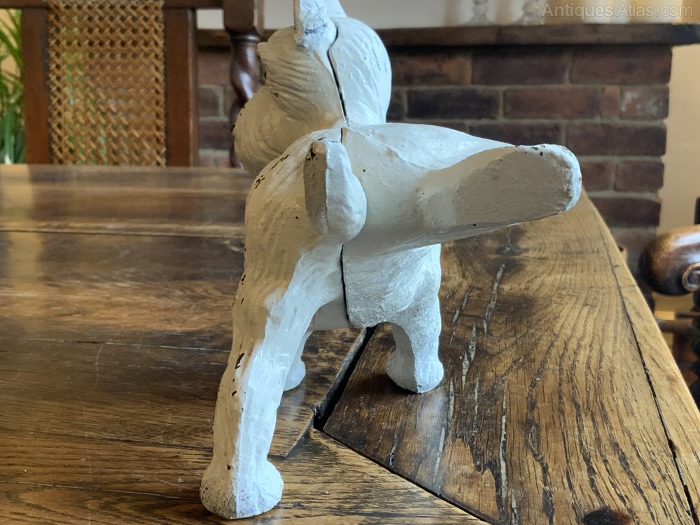 Vintage Cast Iron Doorstop of a White Scottie Dog