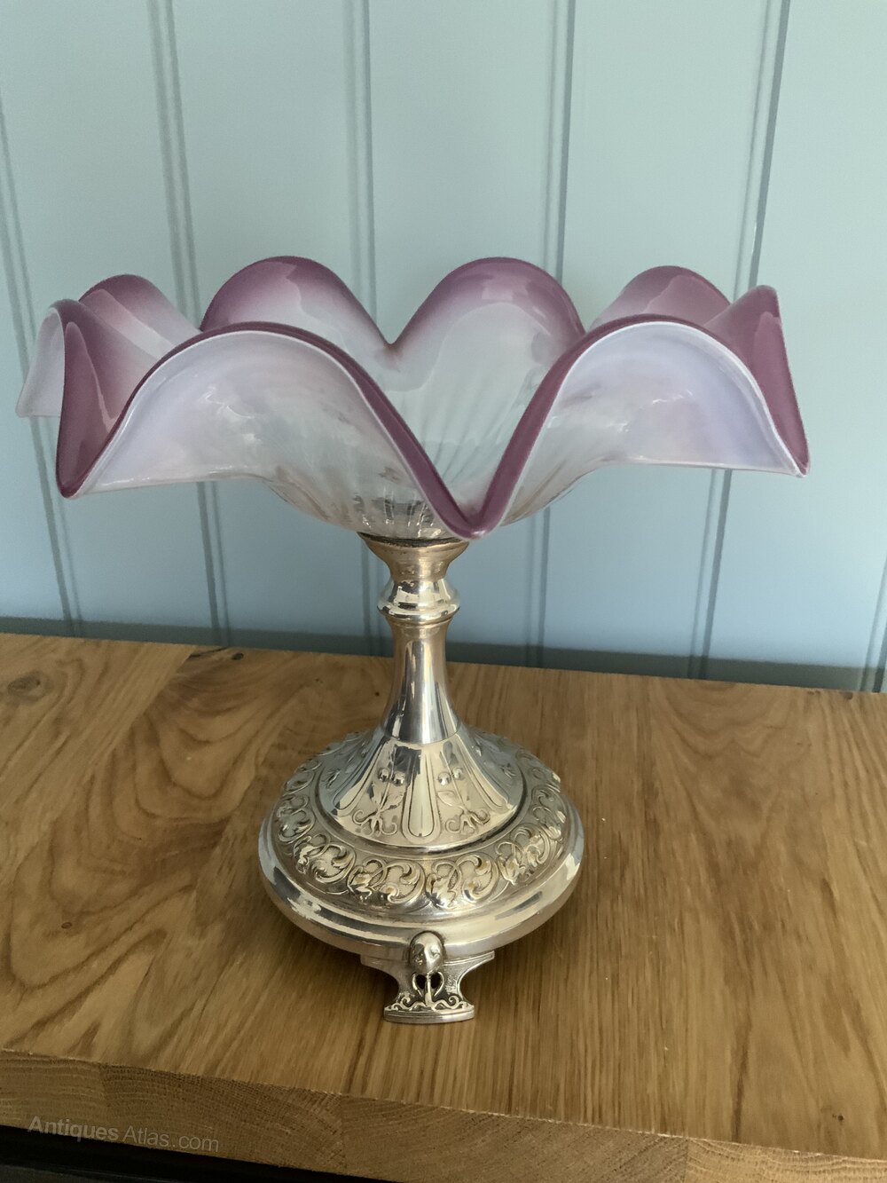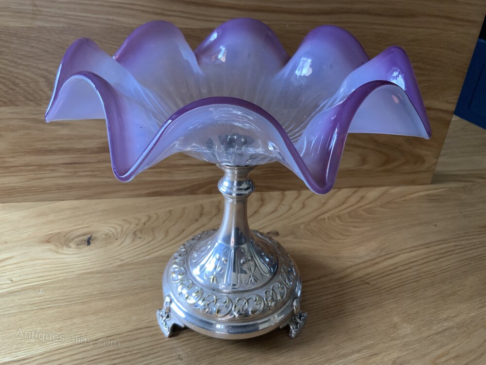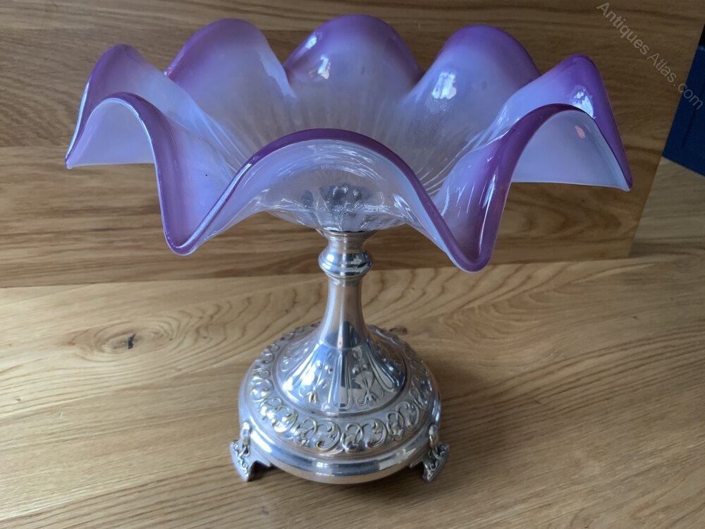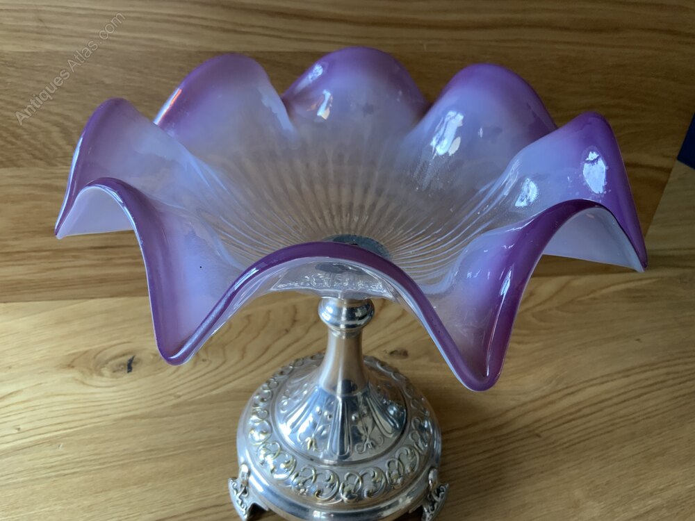 Early Silver Plated and Purple Vaseline Glass Table CentreThis is a lovely 19th Century Piece
