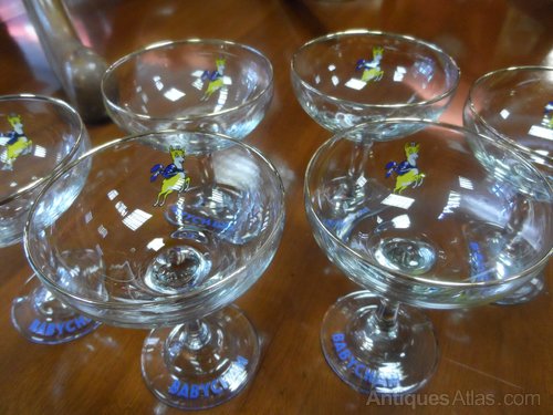 Super set of 6 original babycham glasses.The traditional yellow deer on the front with babycham in blue to the base.