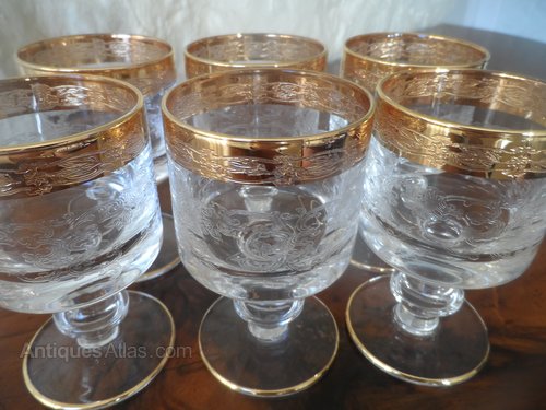 Set of Six Heavy Gilted Vintage Wine Glasses