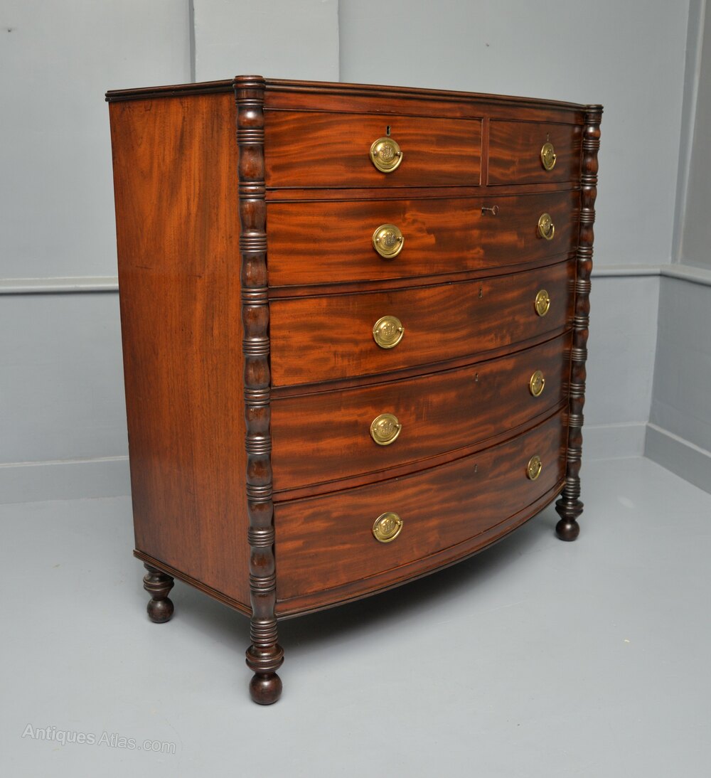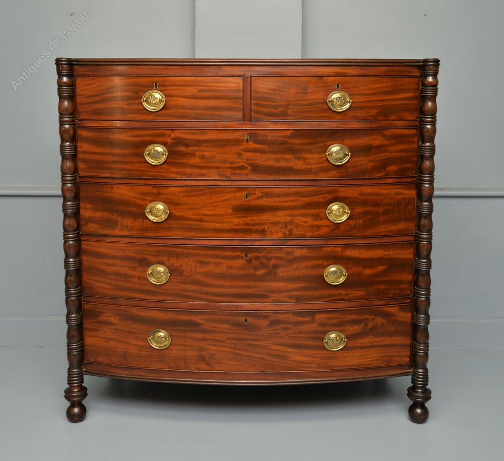 -Welcome to Mersham Manor Antiques-A very handsome Regency bow-front mahogany chest of drawers.