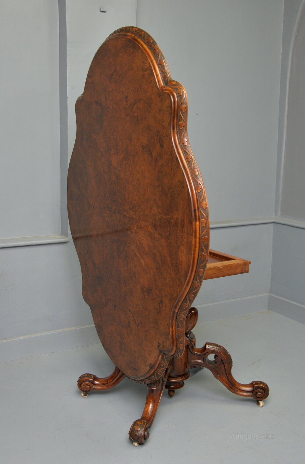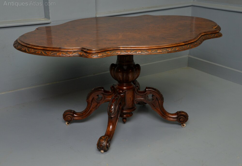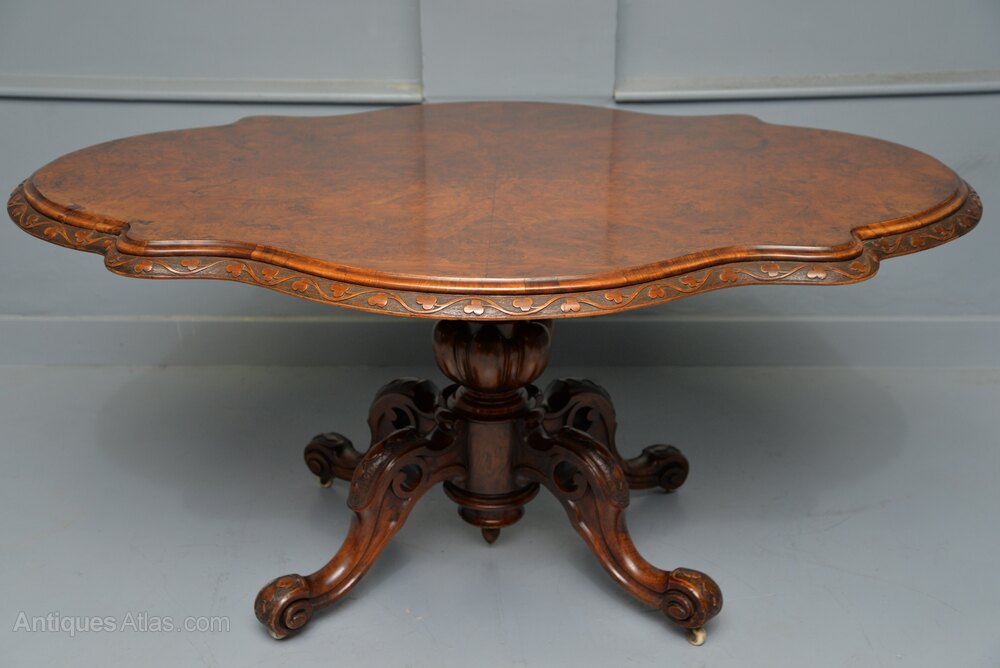 -Welcome to Mersham Manor Antiques-A very striking and fine quality Victorian burr-walnut tilt top pedestal dining table, of wonderful rich colour and beautiful figuring to the wood.