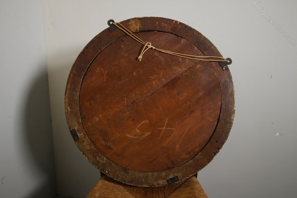 A very good quality, large sized English early 19th century antique circular convex wall mirror that has masses of decorative gilt balls, many more than usual. This is a very original example having the original mercury glass convex mirror plate and pine back boards. Still in the original Regency gilt finish which is in very good condition. English and dating to around 1815.