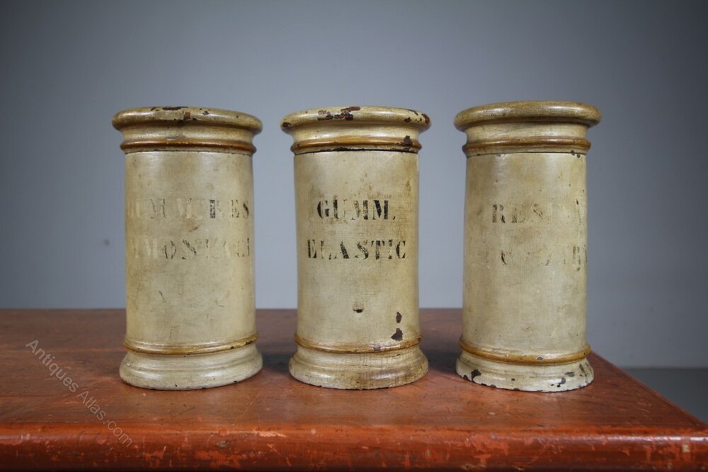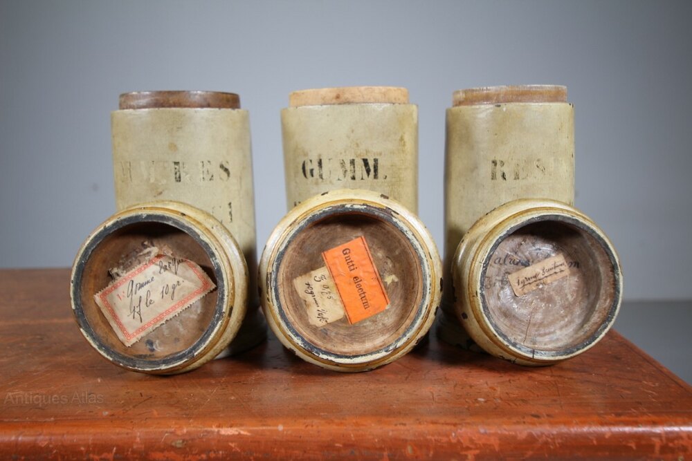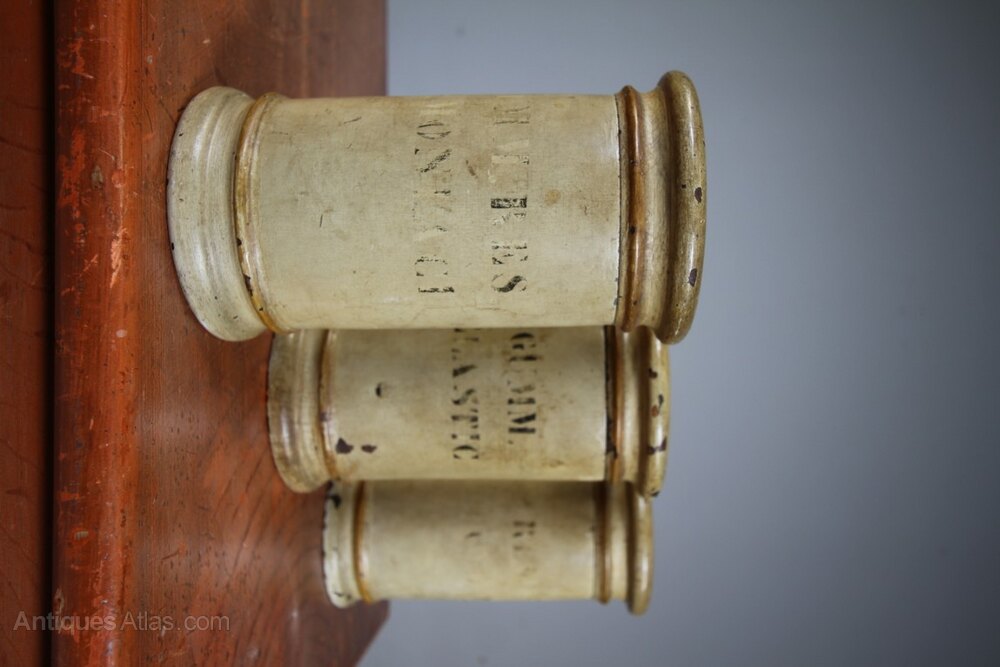 Set of Three Box Wood 19th Century Antique Chemist Jars