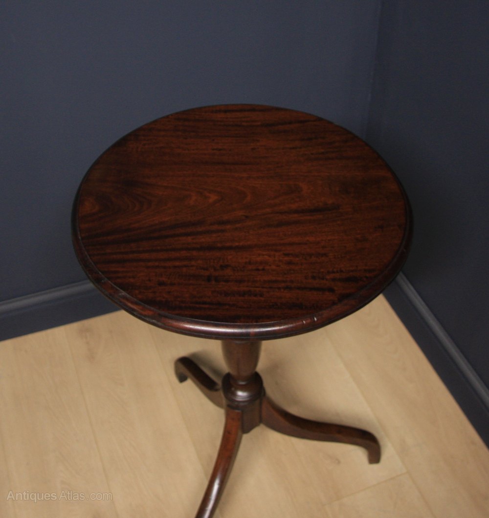 Good quality small regency mahogany wine table having figured mahogany top with moulded edge over turned pedestal all standing on a tripod base.circa 1820