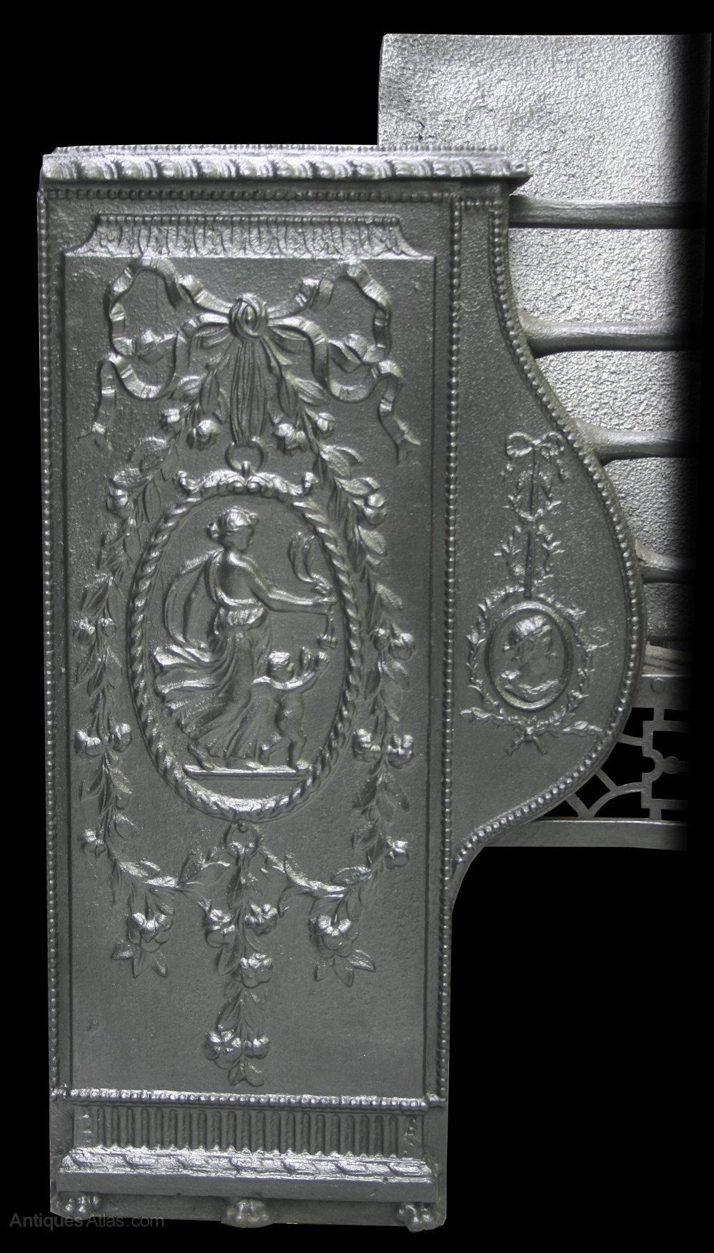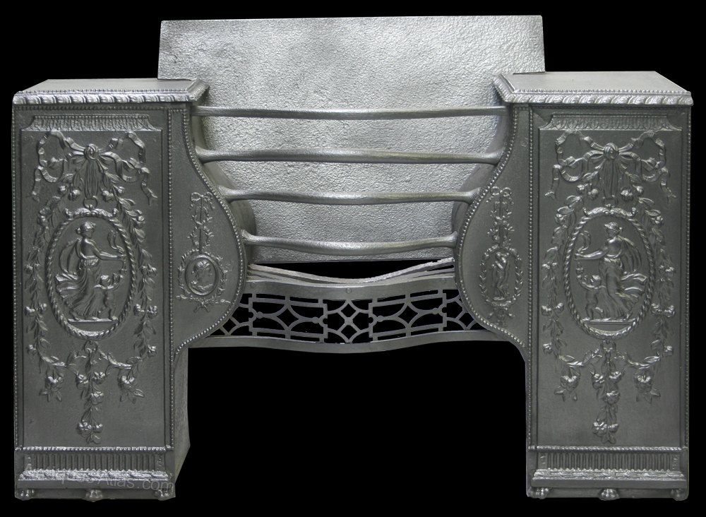 Large antique 18th century Georgian cast iron hob register grate in the neo classical manner of Robert Adam.Overall width 38" / 965mm