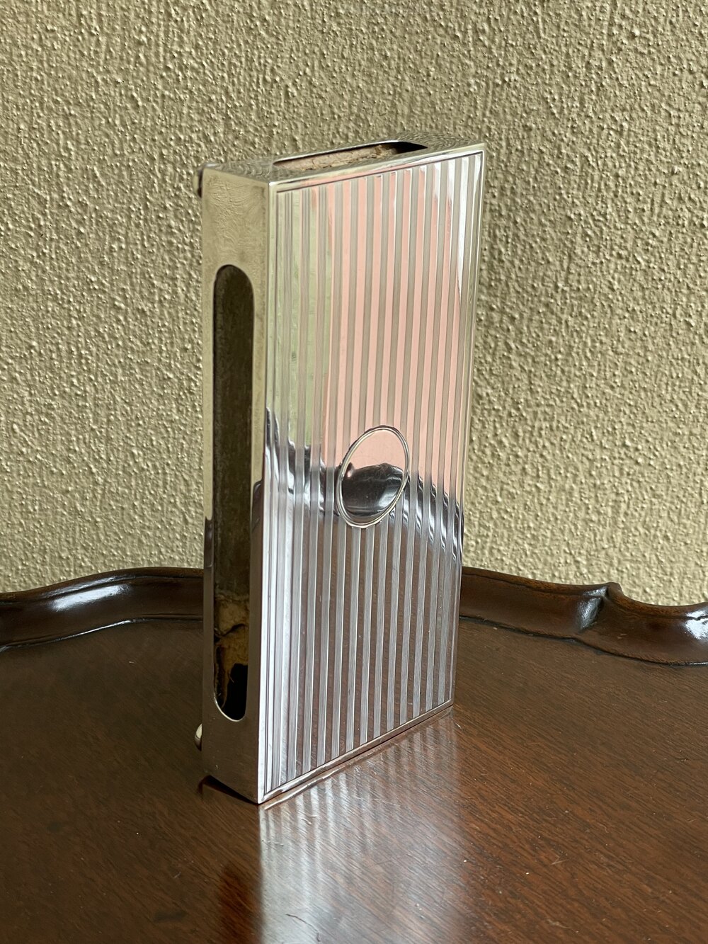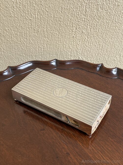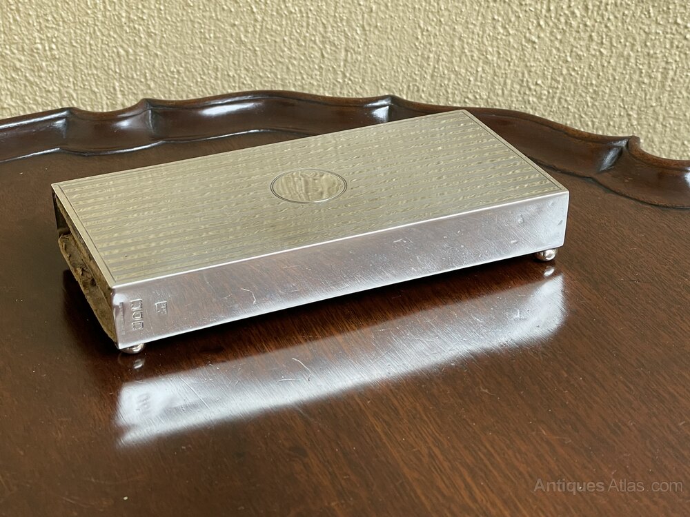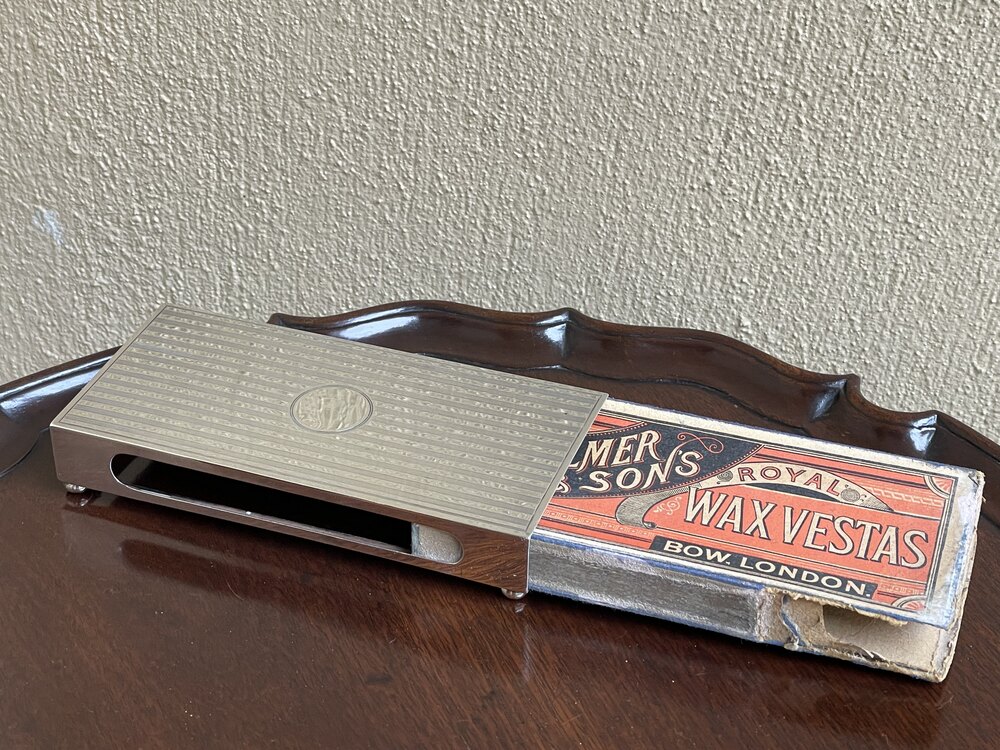 A good very large George V silver match box cover with machined decoration to both sides, by Mappin and Webb, hallmarked London. Standing on bun feet and retaining original palmers match box.In excellent condition throughout.