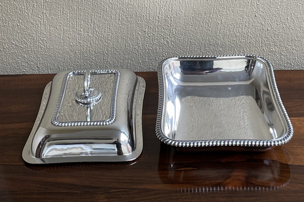 A good quality and very heavy Edwardian solid silver rectangular tureen / entrée dish having a quality rectangular dish with a lift off lid and handle to the top. All components fully hallmarked for Sheffield 1907 by Z Barraclough & Sons (James Henry & Herbert Barraclough)Weight: 1725 grams