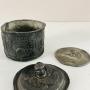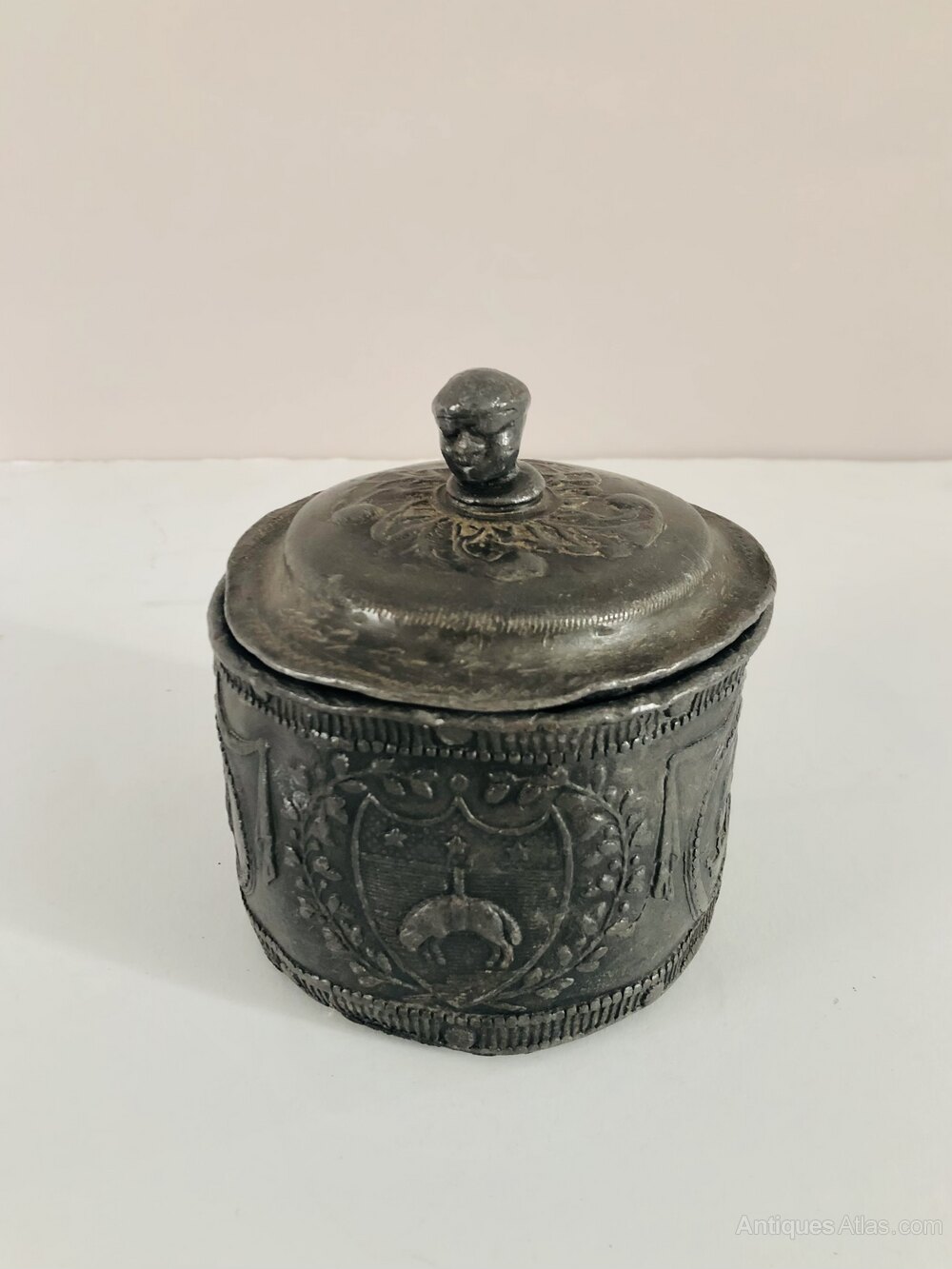 Mid 18th century table Tobacco Pot. The circular body is decorated all over, and the lid is finished with a knob in the form of a man's head. The pot has its original inner lid that sits upon the tobacco to keep it moist. The condition is excellent. Circa 1760Height: 12cm