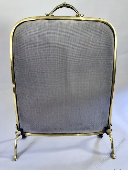 An elegant brass and wire mesh free standing Fire Guard. The frame is gently curved, giving the fine mesh a slight concave. Good quality decorative cast brass feet and handle. Perfect for a small fire place. Circa 1920Height: 61cm