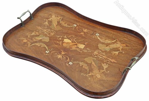 Antique Fine Quality Inlaid Mahogany Serving Tray