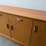 A Danish influenced G Plan long sideboard produced in the 1970s …also ideal as a TV stand or media unit.The top drawer is fitted with the original red felt-lined cutlery tray, complete with segmented dividers and embossed G Plan roundel.