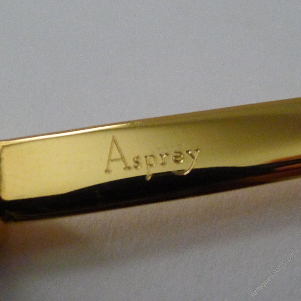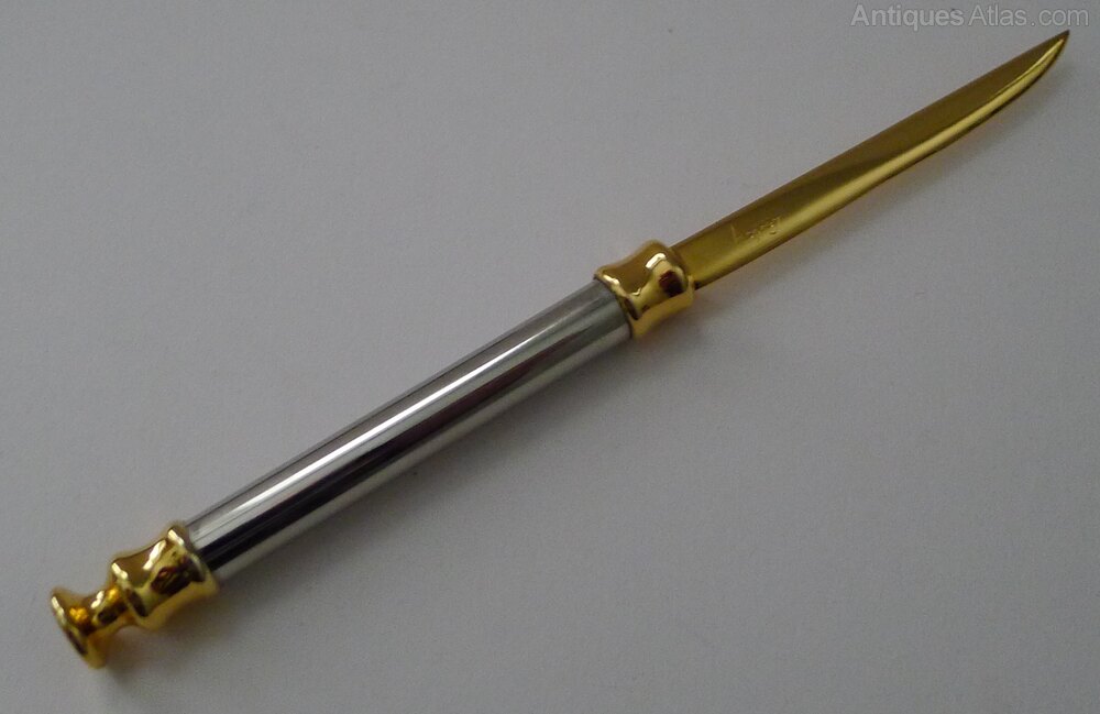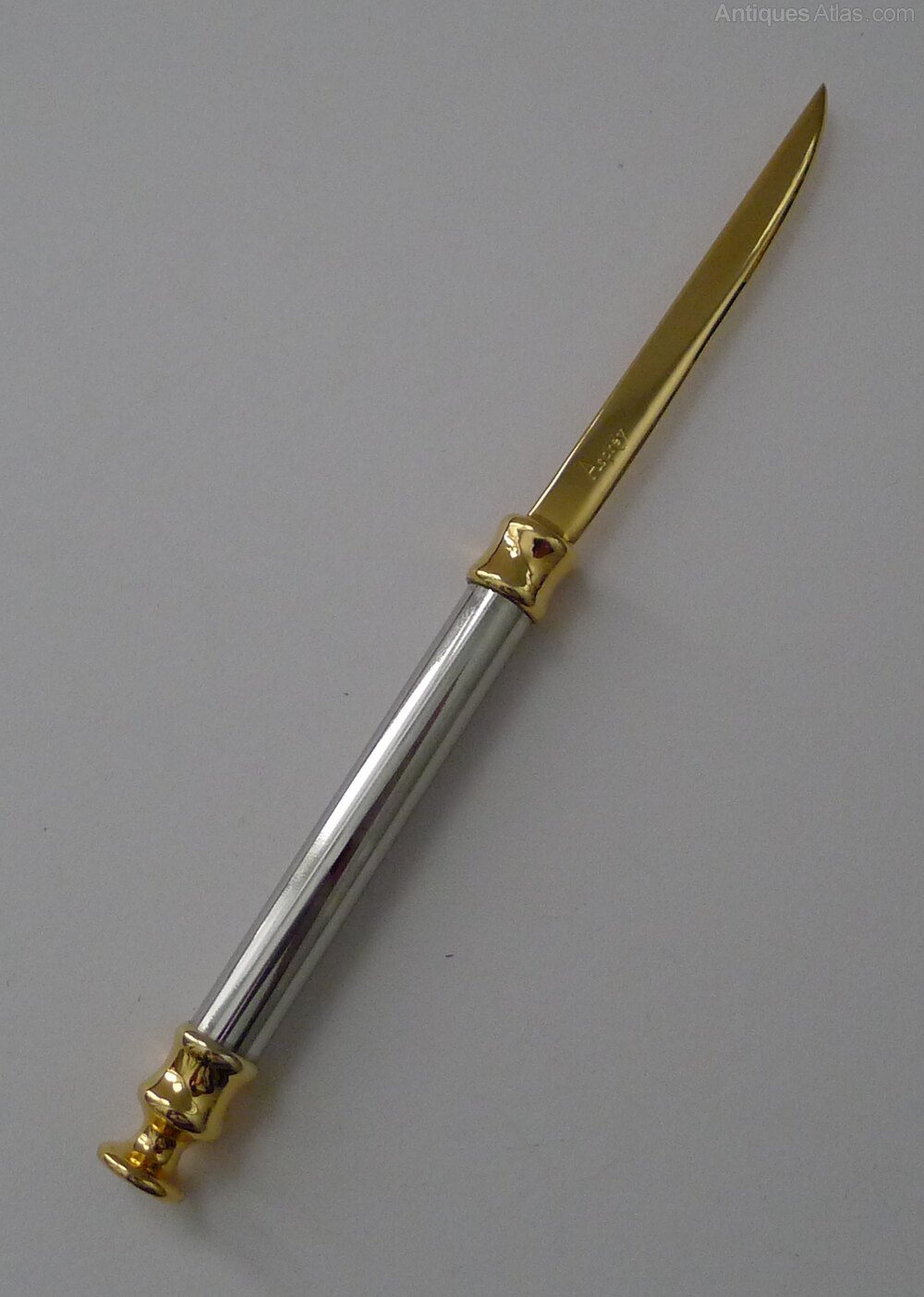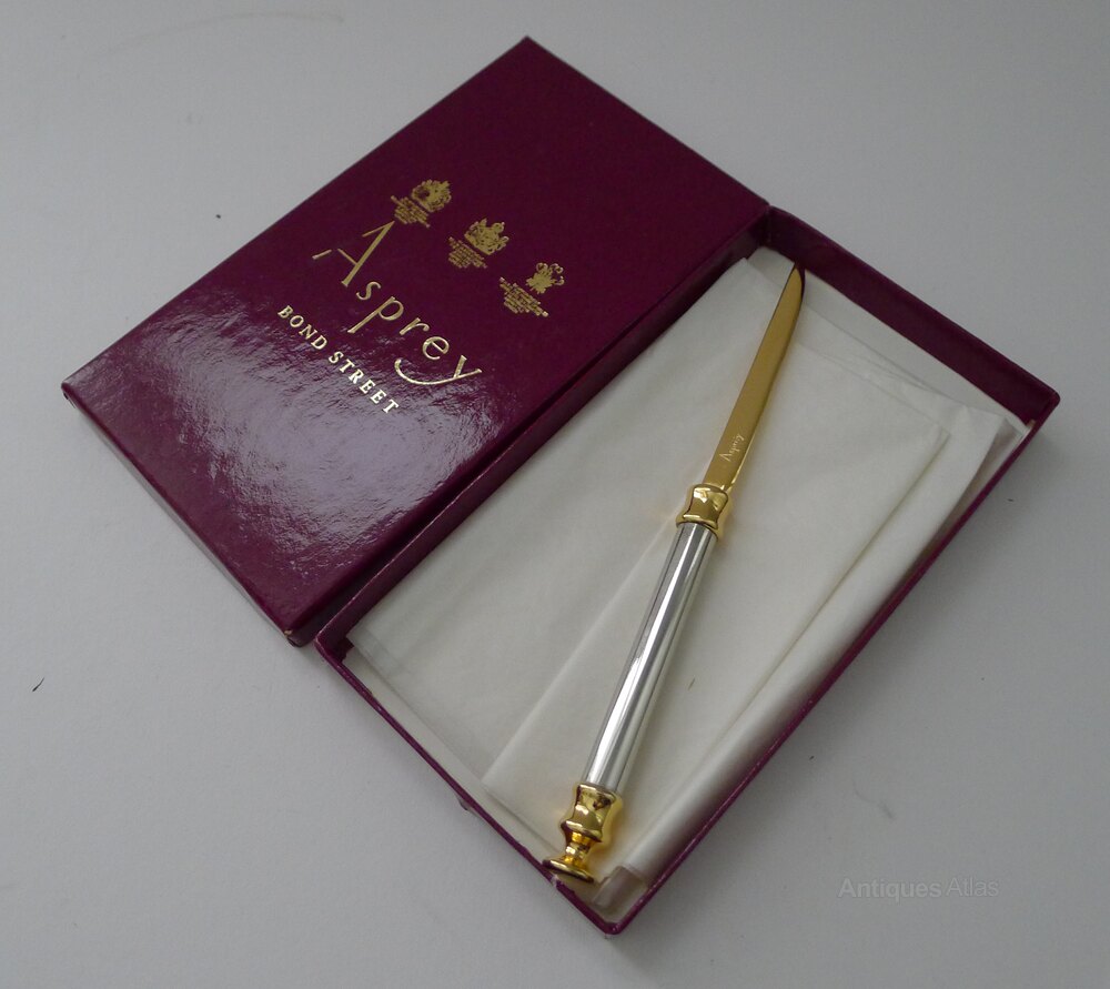 A very fine vintage letter opener by Asprey of Bond Street, London.The letter opener looks never to have been used. Made from a combination of polished steel, partly gilded to create an interesting and very elegant desk-top accessory. The blade signed "Asprey".
