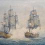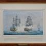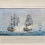 Sir Charles Burrard (1793-1870) joined the Royal Navy at the age of 11, in 1805. By 1806 he was aboard HMS London as a Midshipman. This was during the Napoleonic Wars, months after the Battle of Trafalgar. In the morning darkness of the 13th March, French commerce raiders mistook the ships of his squadron for merchantmen. Before the French surrender, 10 men had been killed and 22 wounded aboard HMS London during hours of thunderous gunfire. It has been recorded that Burrard later painted this event from a removed third-person viewpoint (likely to be our watercolour). He was a prolific artist and has left substantial numbers of his watercolours and sketches, all of which appear to be in private hands. His marine paintings, of scenes during the French wars, may have been done partly from memory or from sketches made at the time.