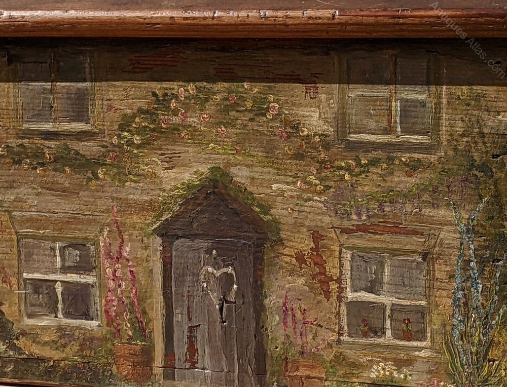 Charming Folk Art Hand Painted Georgian Cottage Box