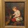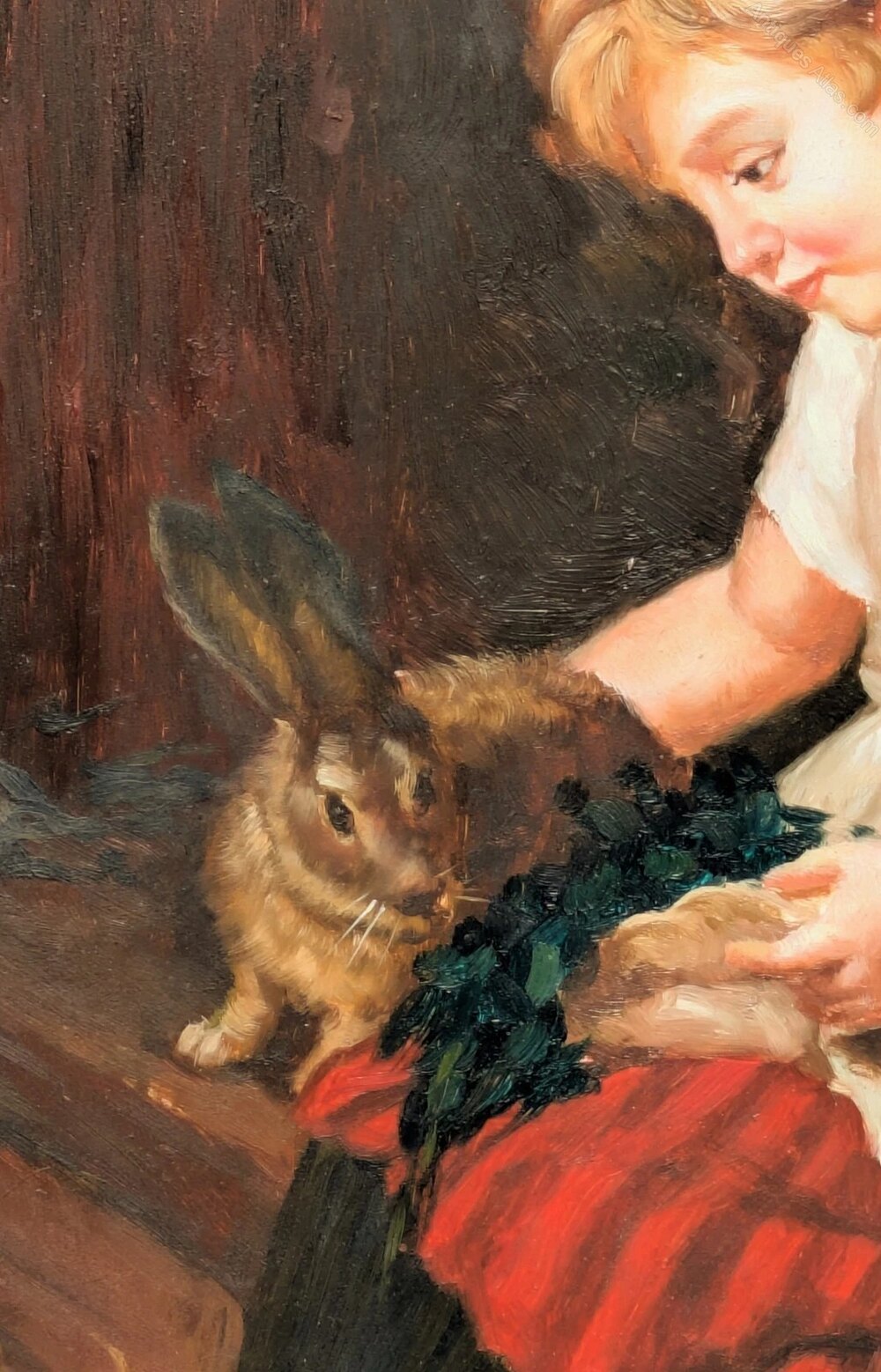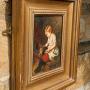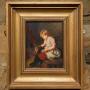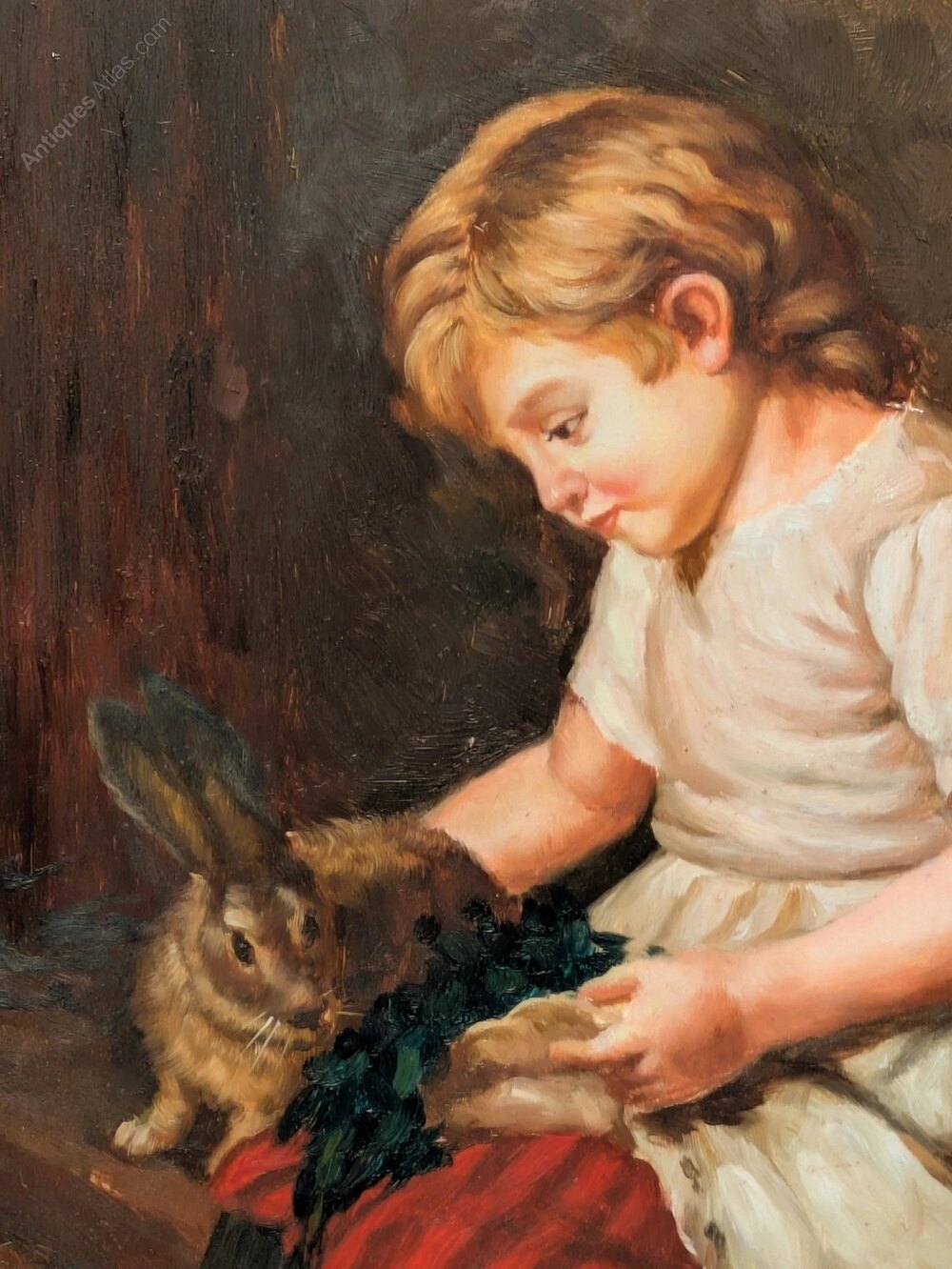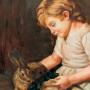 19th Century Oil Painting on Oak Panel Girl & Rabbit