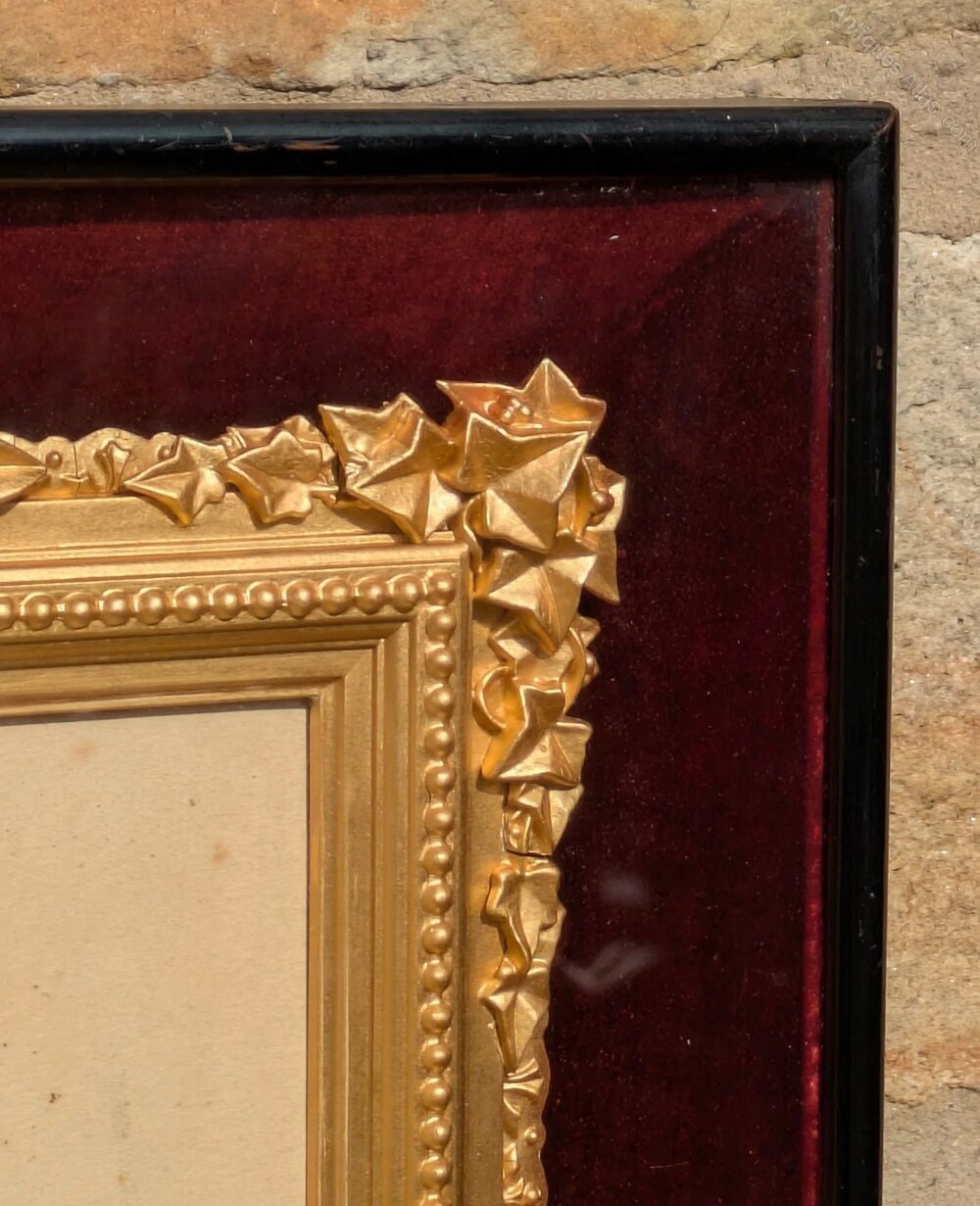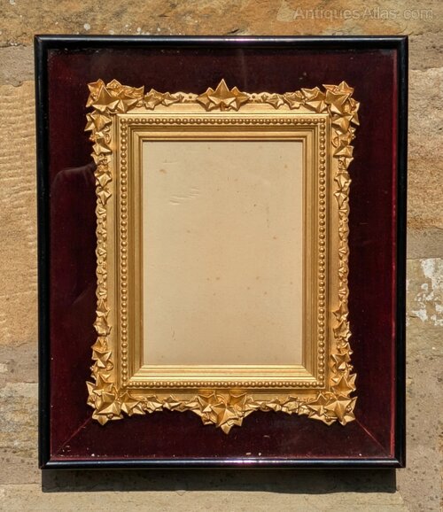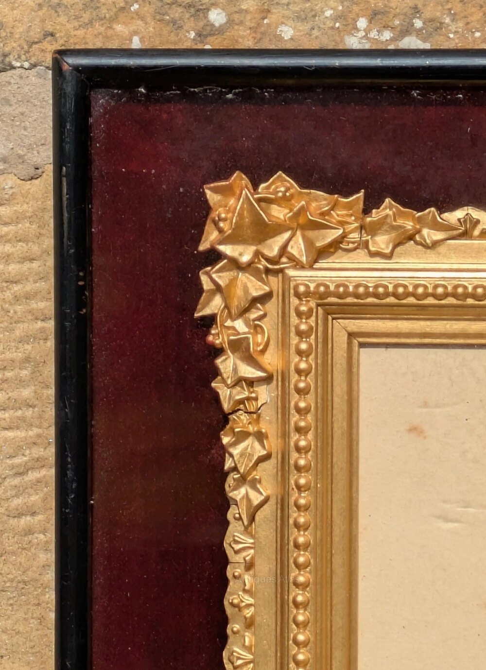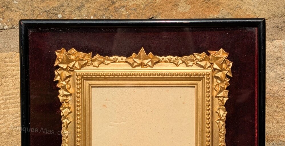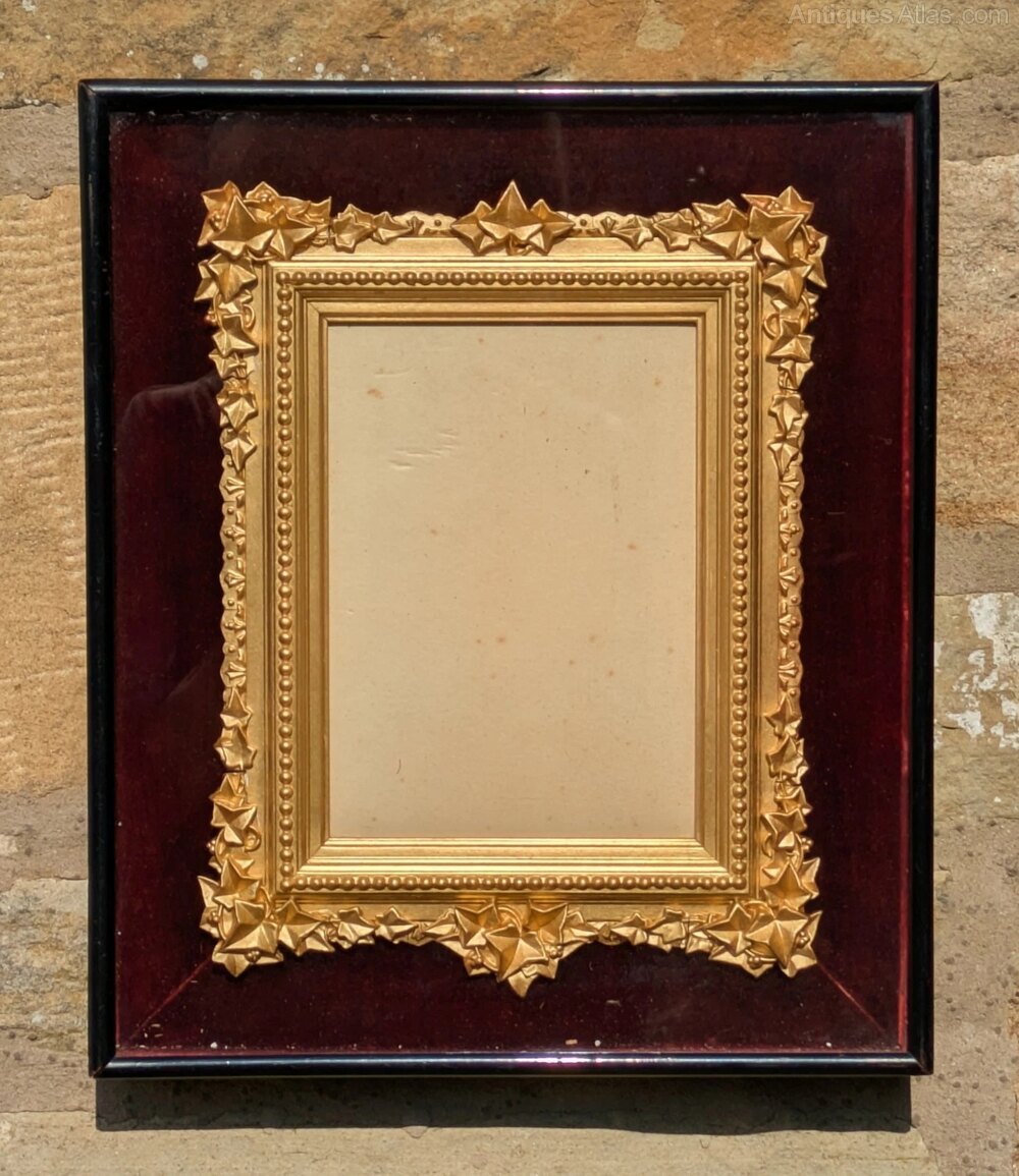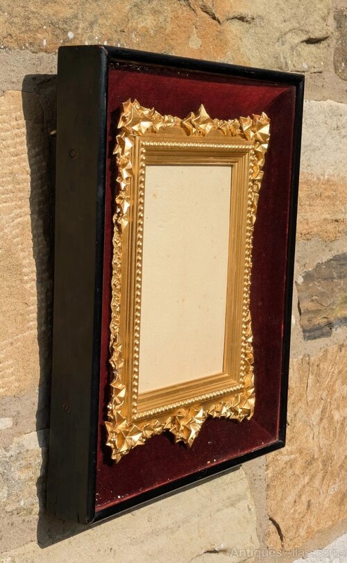 Rare Victorian Ivy Leaf Gilt Frame Glazed Box Velvet