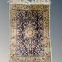 This is a good early 20th century Chinese Silk Rug in excellent clean condition dating from around 1930. The finely hand woven carpet has great detail to the floral indigo field which is centred by a medallion and framed by ivory borders of meandering vines and palmettes. This is in beautiful original condition with fringes all intact and looks lovely down but would also make a fine wall hanging.The rug measures 92cm by 61cm.