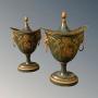 This is an elegant pair of Regency style toleware chestnut urns in the classical taste with gilt metal lions mask ring handles.The pair are painted in an attractive sage green colour with gilded highlights and gilt pineapple finials.
